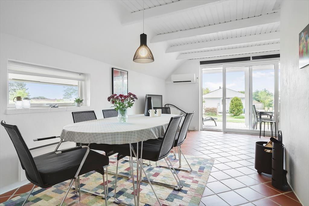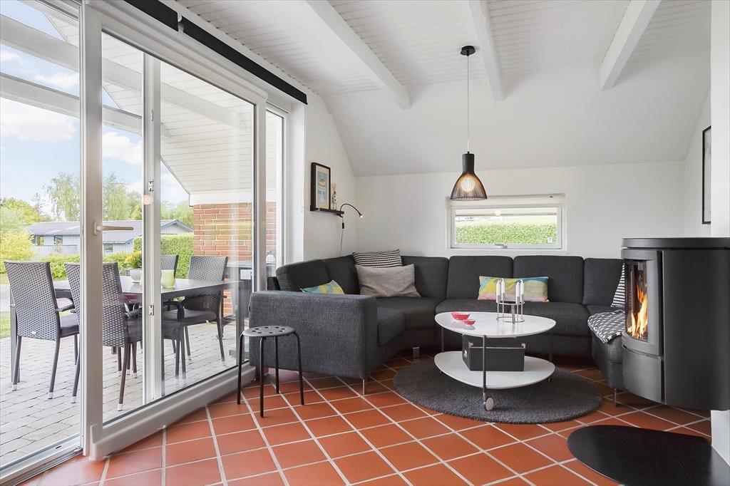Vi byder indenfor i dette dejlige sommerhus i Pøt Strandby med kun 350 meter til stranden. Huset er et fint murstenshus med klinkegulve, der er hyggeligt indrettet med en lys, åben stue og brændeovn. Det åbne køkken/alrum og stue er husets hjerte med store vinduer og direkte udgang til terrassen. Brændeovnen er centralt placeret, så man kan sidde i sofaen og nyde varmen eller tænde for TV´et, der har tv-pakke med danske, tyske og skandinaviske kanaler. Derudover er der Chromecast, hvor man selv kan vælge det indhold, man ønsker at se. Huset har også WiFi til fri afbenyttelse. Sofahjørnet er hyggeligt indrettet med puder, og ideelt til at slappe af og læse en bog.