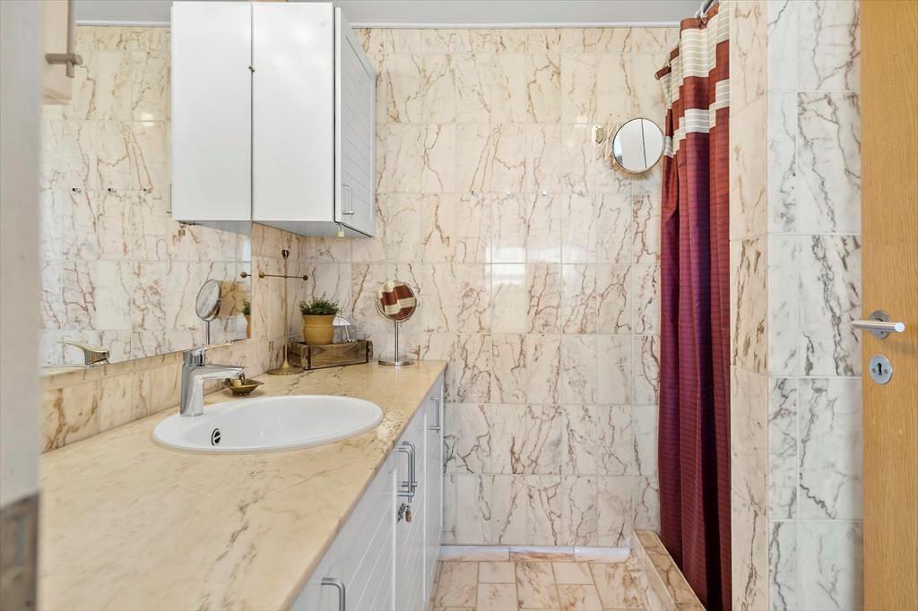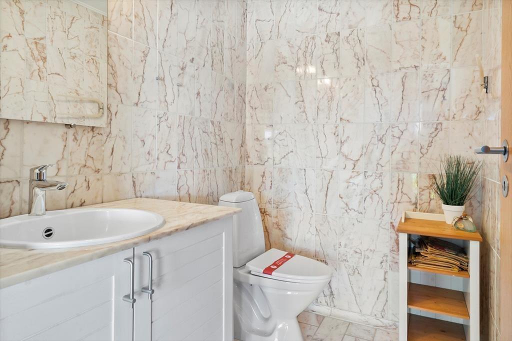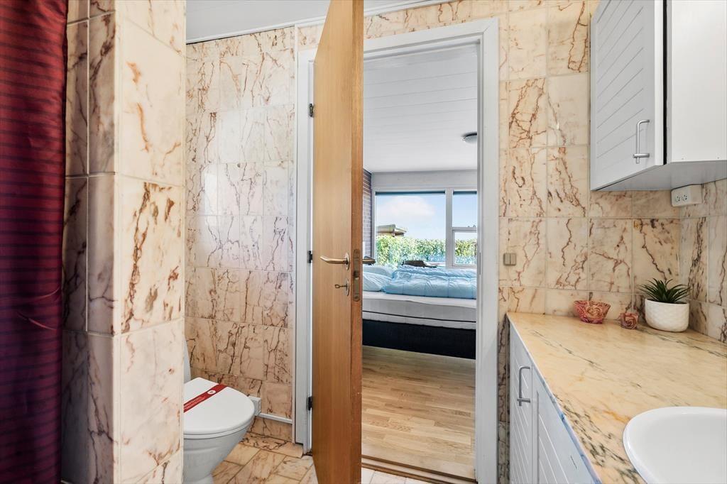 Huset har to badeværelser, hvoraf det ene har adgang fra det store soveværelse, og det andet er med bruser. Begge badeværelser har klinkegulv og gulvvarme. Bryggerset er udover indgang også et godt disponibelt rum, hvor man blandt andet finder strygebræt, vaskemaskine og en ekstra barnestol.