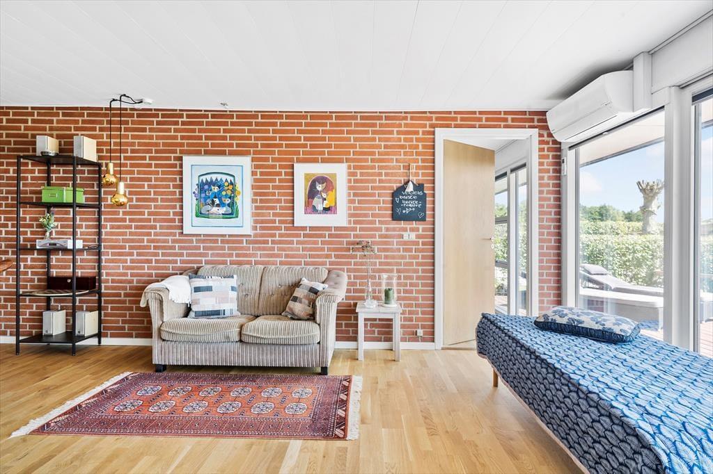 Huset er fra 1987, men er et meget velholdt sommerhus, der er renoveret i 2017. De røde mursten indendørs er bevaret, hvilket skaber en autentisk og hyggelig stemning i huset.