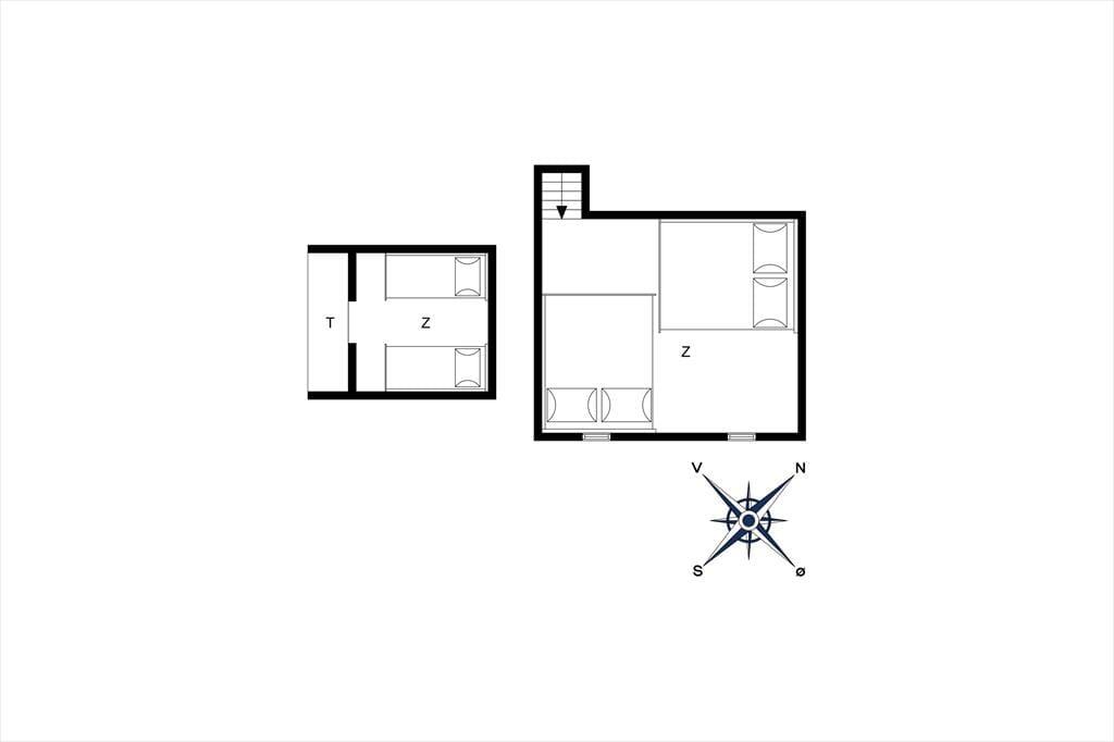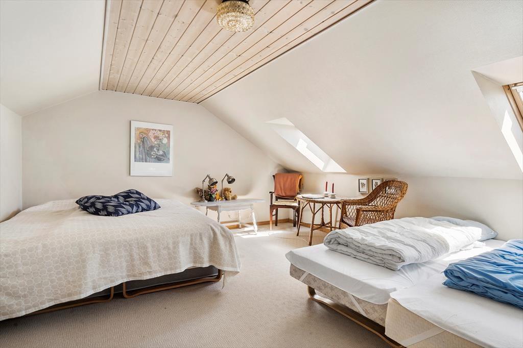 På første sal er yderligere et soveværelse. Der er adgang hertil via en stejl trappe, men her er udsigten også i top. Værelset er lyst med væg til væg-tæppe og både en god enkeltmands- og dobbeltseng.
