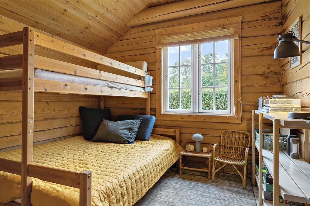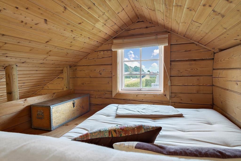 Kun 200 meter fra vandet bydes I velkommen til denne helt unikke og autentiske bjælkehytte der er lavet af Sibirsk lærketræ. Lige fra I træder indenfor, kan I mærke varmen og hyggen, der indbyder til samvær og afslapning med familien. Bjælkehytten er indrettet med rummeligt køkken/alrum i åben forbindelse til stuen med hjørnesofa og brændeovn. Her er plads til at nyde et brætspil eller to. Hytten rummer desuden to rigtig gode værelser med 5 sovepladser alt, samt et dejligt badeværelse med combi vaske/tørretumbler. Dertil kommer også to rummelige hemse med sovepladser, hvor der er kig til vandet fra den ene hems.
