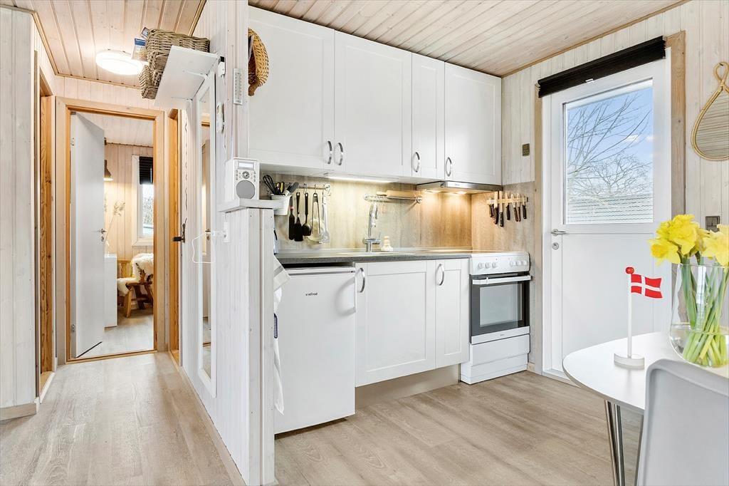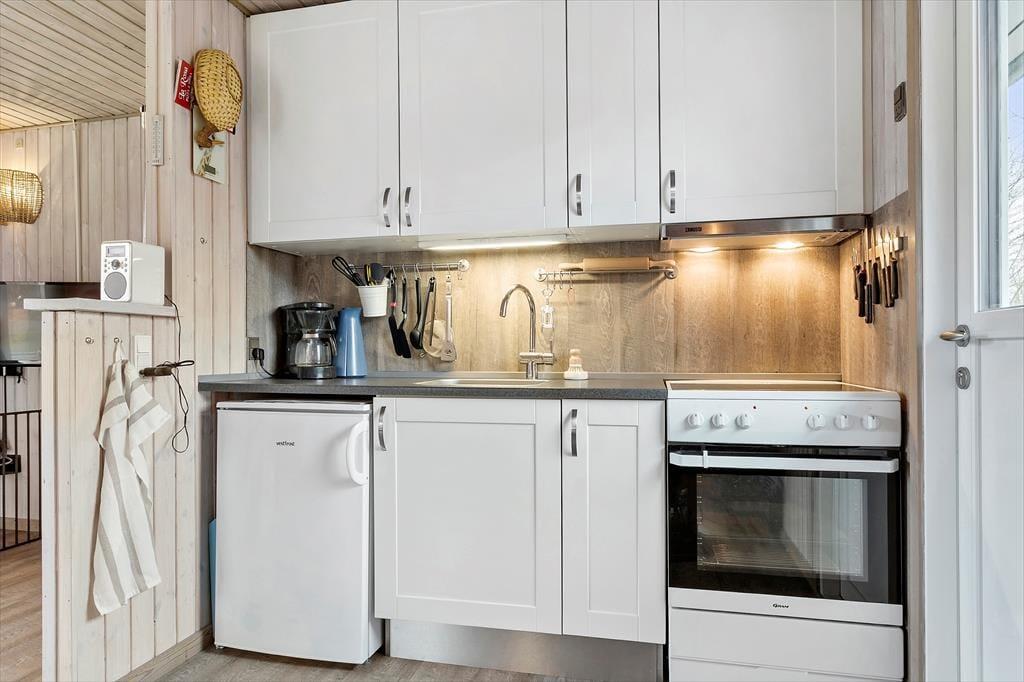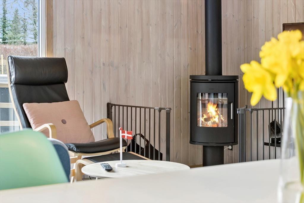 I køkkenalrummet finder I alt, hvad I behøver til at lave lækker mad, herunder en komfur, køleskab, kaffemaskine, elkedel og mikroovn. Når I ønsker at nyde hyggen ved brændeovnen, er der også mulighed for det.