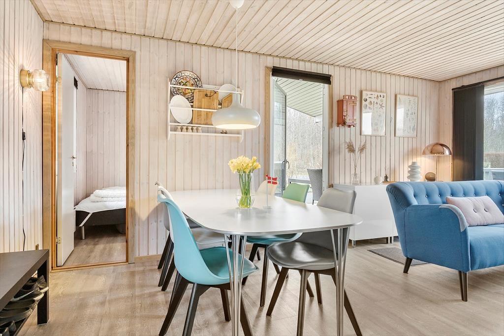 I stuen er der masser af lys, som giver en dejlig og afslappet atmosfære. Her kan I slappe af på sofaen eller lænestolen og se tv eller læse en bog. I sommerhuset er der også 3 gode soveværelser, hvor I kan få en god nats søvn efter en lang dag med aktiviteter. Der er desuden WiFi og Chromecast i huset til streaming af egne tjenester.