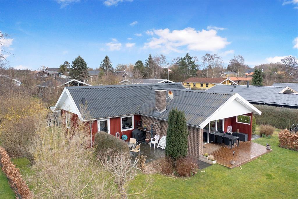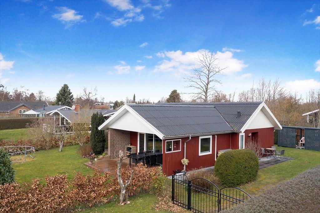 Til sommerhuset hører en dejlig stor have, med en stor græsplæne, hvor børnene kan lege. Huset har også en stor dejlig terrasse, hvor man altid vil kunne finde læ og en solplet. Med andre ord er det muligt at få slappet helt af, mens børnene tumler rundt og leger. Generelt; et meget børnevenligt område, der både appellerer til samvær, afslapning og leg.