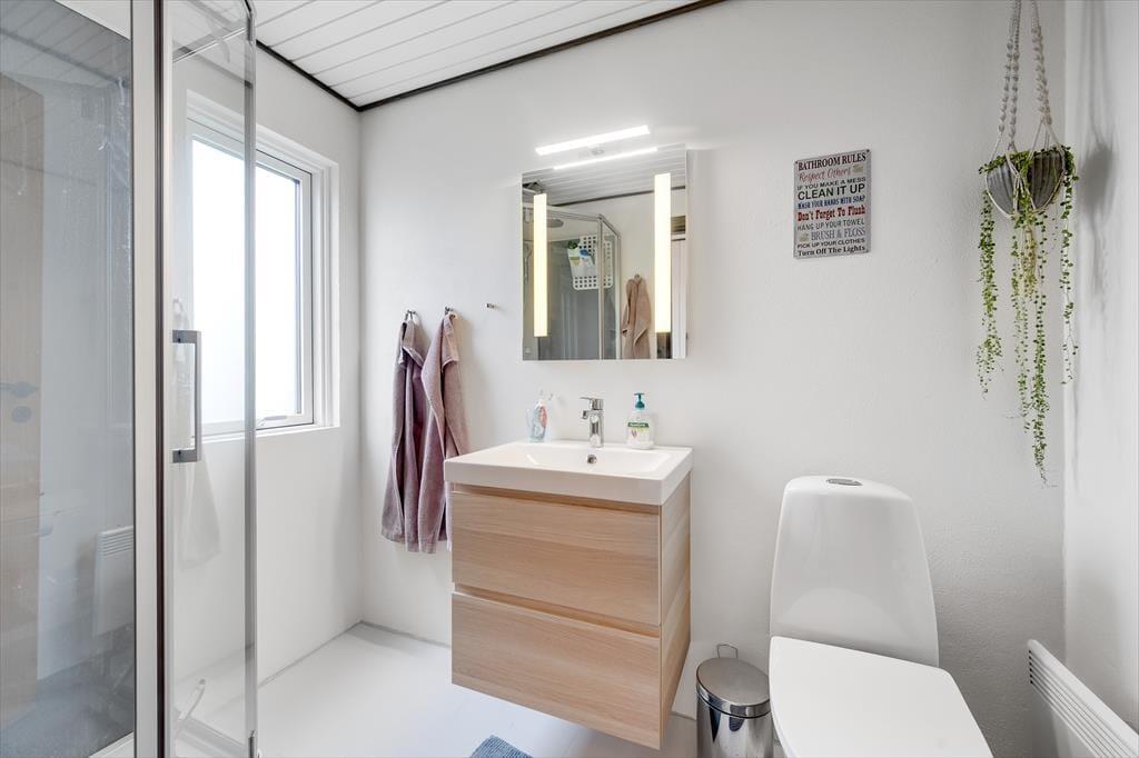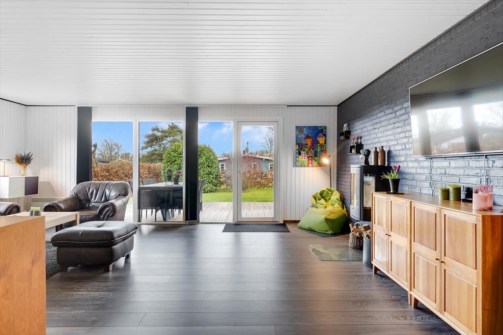 Sommerhuset er lyst og venligt med god plads. Det er moderne og har en god indretning med alle de nødvendige fornødenheder til den gode ferie. Huset har en stor og hyggelig stue, hvor der er plads til hele familien. Dertil er der en brændeovn, der skaber varme og god stemning på de kølige aftner. I forlængelsen af stuen er der et stort alrum med et stort spisebord, hvor alle kan indtage deres måltider samme. Det åbne, lyse køkken, der vender ud mod stuen, gør, at alle kan være sammen; om man laver mad, spiser, spiller spil el.lign.