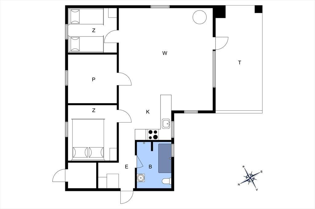Beliggenheden er også fantastisk, da sommerhuset kun er 300 meter fra stranden. Her kan I tage en forfriskende svømmetur, gå ture langs stranden eller bare nyde den smukke udsigt. En dejlig terrasse omkranser huset og her er det både muligt at sidde ude og nyde solen eller gå i skyggen i den overdækkede del af terrassen. Haven er indhegnet med lille hegn.