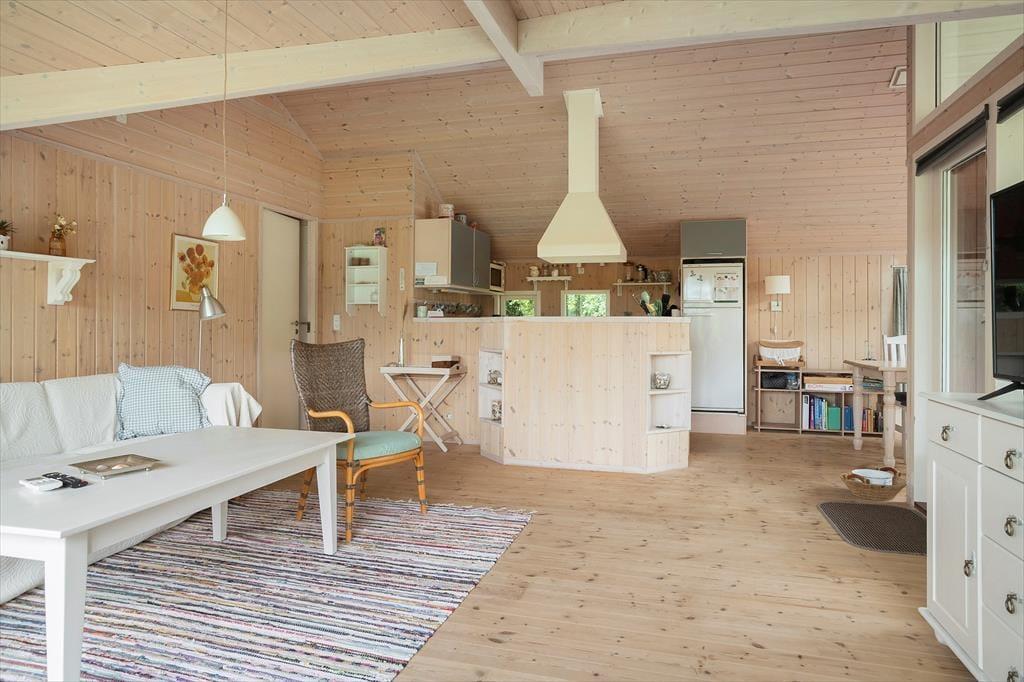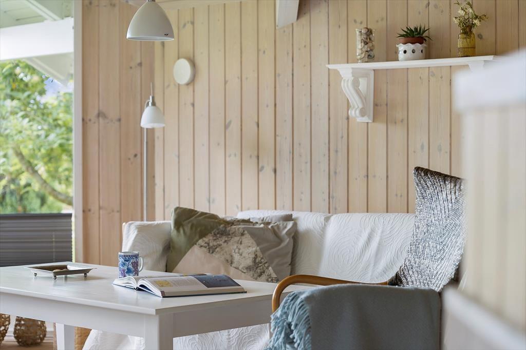 I stuen er der masser af lys, som giver en dejlig og afslappet atmosfære. Her kan I slappe af på sofaen eller lænestolen og se tv eller læse en bog. I sommerhuset er der også 3 gode soveværelser, hvor I kan få en god nats søvn efter en lang dag med aktiviteter. Der er desuden WiFi og Chromecast i huset til streaming af egne tjenester.