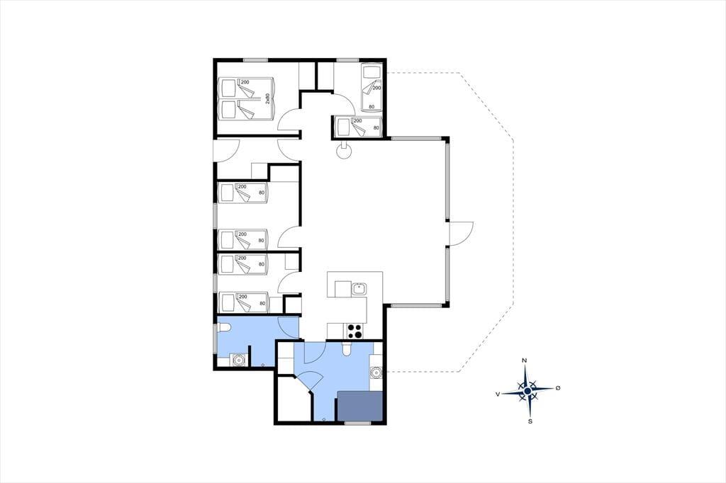 Sommerhuset har 4 indbydende soveværelser, hvor der i alt kan sove 8 personer. Der er 3 soveværelser med 2 enkelte senge og 1 soveværelse med 1 dobbeltseng. Badeværelserne har en god størrelse og i det store er der spa og sauna.