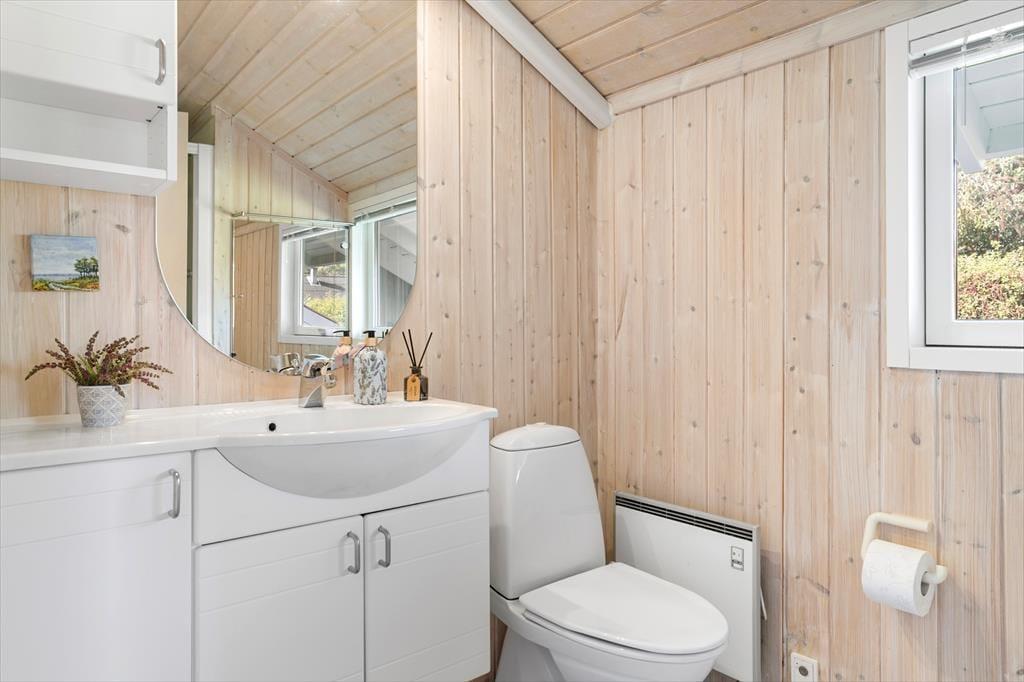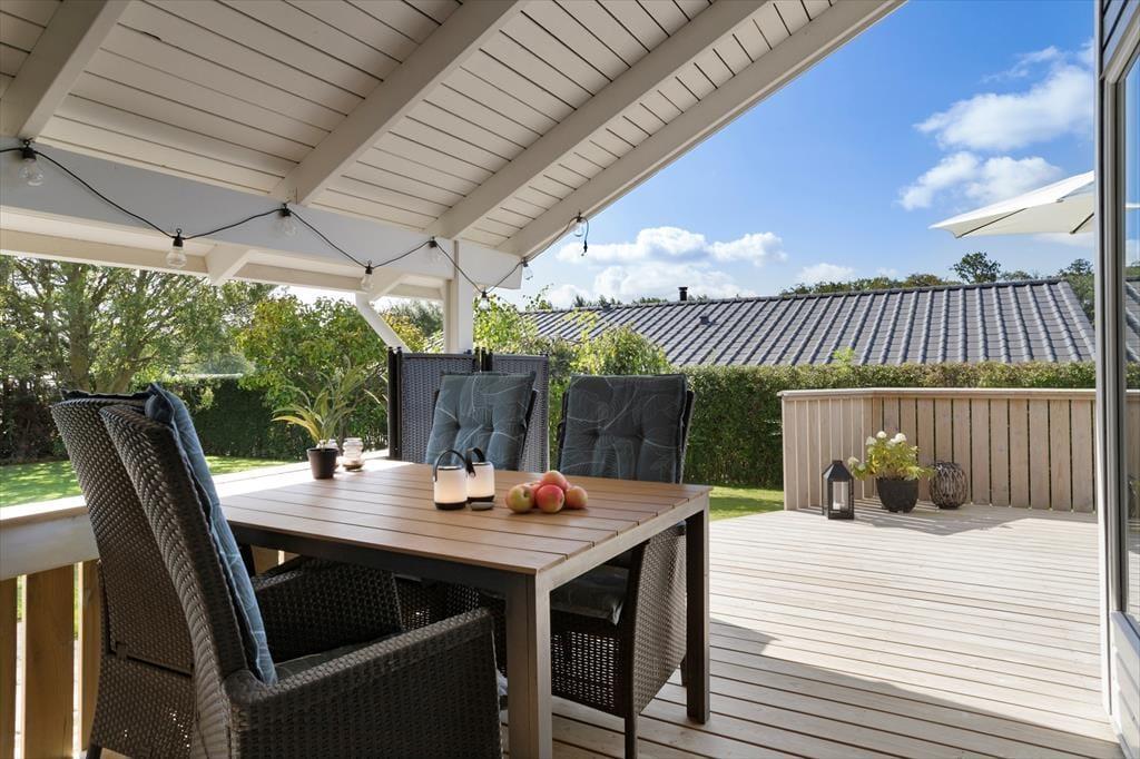 Sommerhuset design af køkken, spiseplads, alkove og stue giver en dejlig og afslappet atmosfære. Denne kombination skaber en behagelig forbindelse mellem madlavning og samvær, så du kan deltage i samtaler med familien eller venner, mens maden tilberedes. I stuen kan I slappe af på sofaen og se tv eller læse en bog. Fra stuen er der direkte adgang til en delvis overdækket terrasse, hvor I kan grille og spise aftensmad.