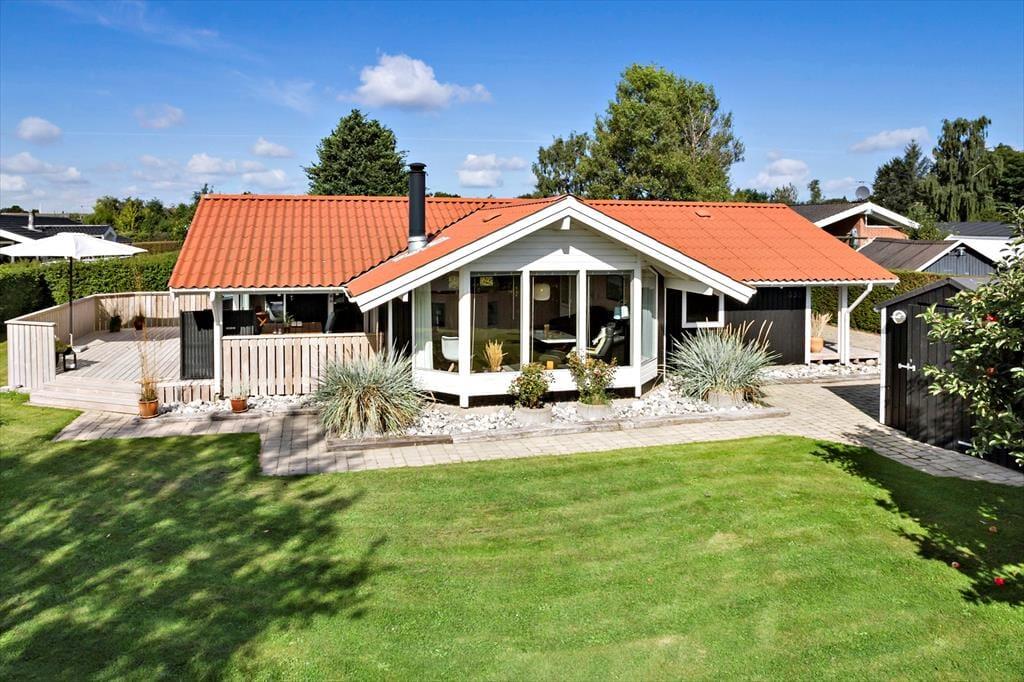 Sommerhuset ligger i den skønne feriekoloni Pøt Strandby tæt på Juelsminde. Husets placering i et lukket vænge tæt på bæk, skov og strand, kan I nyde ferien ugeneret og i rolige omgivelser. Omkring huset er en dejlig lukket have med en græsplæne, så der er god plads til div havespil mm, eller lægge sig i græsset og nyde den friske havluft. En træterrasse som er syd/sydvest vendt som sikkert bliver jeres yndlingsplads, hvor du kan nyde hele dagen på. På syd terrassen kan I samles udenfor på dejlige sommeraftener som også er delvis overdækket. Der findes også en mindre træterrasse mod øst til de helt morgenfriske. Få minutters gang fra på huset ligger en naturlegeplads, hvor børn som voksne kan boltre sig eller du kan tage dine kære i hånden på en kort gåtur ned til den lokale strand, hvor naturen er helt tæt på.