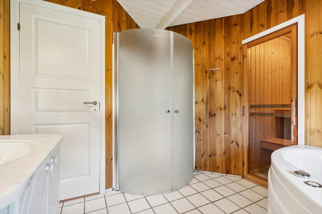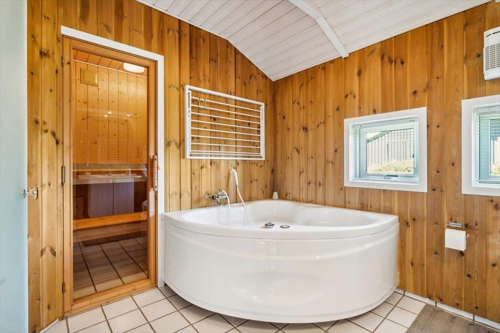 Sommerhuset har tre indbydende soveværelser med plads til op til seks personer. To værelser er indrettet med dobbeltsenge, mens det tredje har en dobbeltsovesofa. Badeværelserne er rummelige, og det største er udstyret med både spa og sauna – ideelt til afslapning efter en dag fyldt med oplevelser. Der er også vaskemaskine og tørretumbler i huset, så praktiske gøremål klares nemt under opholdet.