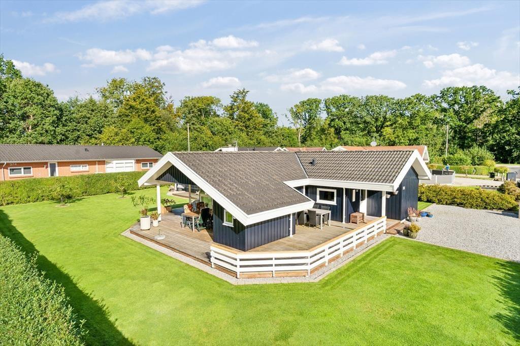 Sommerhuset ligger i den naturskønne feriekoloni Pøt Strandby nær Juelsminde. Beliggenheden tæt på skov og strand giver jer mulighed for at nyde ferien i fredelige omgivelser. Haven har en stor græsplæne med god plads til hygge og afslapning i liggestole. Rundt om huset løber en træterrasse, som hurtigt bliver jeres favoritsted til at nyde morgen- og eftermiddagskaffen. Den sydvendte terrasse er perfekt til aftensmåltider og hyggelige sommeraftener under åben himmel.