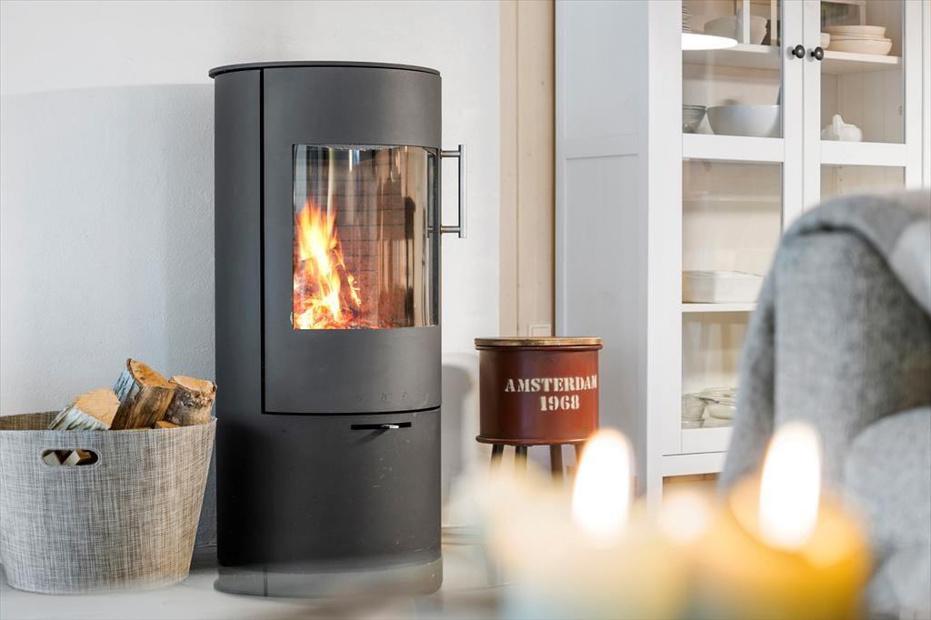 I sofahjørnet ved det store vinduesparti skaber brændeovnen en varm og hyggelig stemning. Her kan I slappe af med en god bog eller en film – det perfekte sted at finde ro.