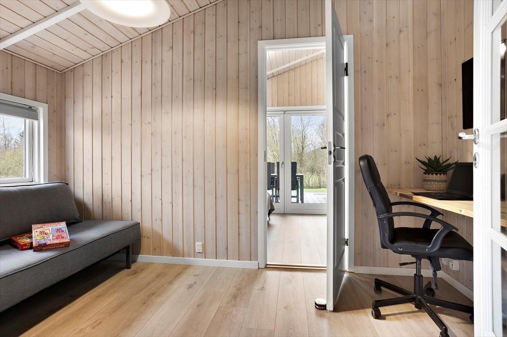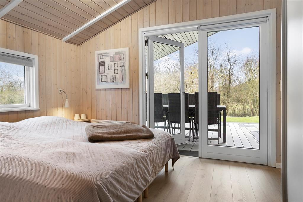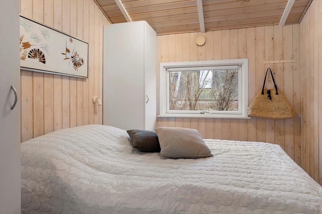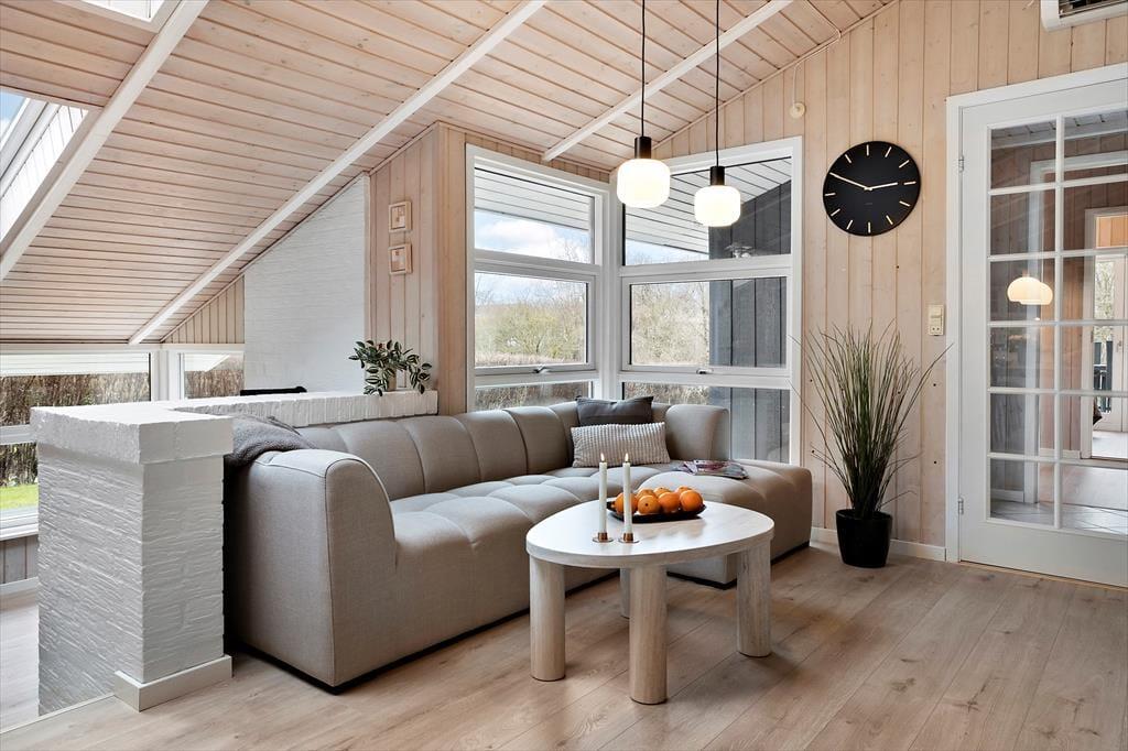 Når I træder ind i sommerhuset, mærker I straks den hyggelige atmosfære og fornemmelsen af, at her er plads til at nyde ferien sammen. De store sydvendte vinduer lukker masser af lys ind og skaber en forbindelse mellem husets rum og haven udenfor. De lyse trævægge giver en skøn sommerhusstemning, som sætter rammen for en fremragende ferieoplevelse.