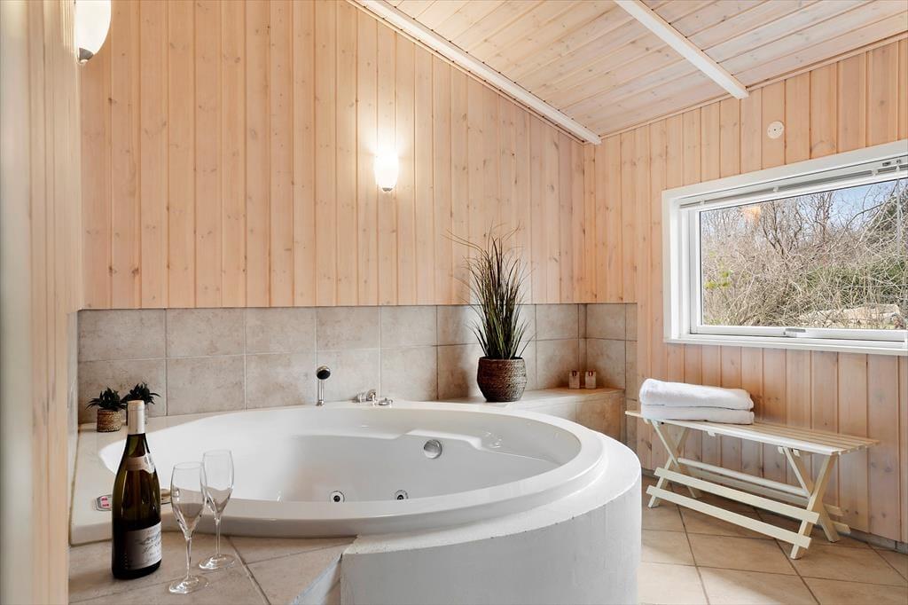 Sommerhuset har fem soveværelser med plads til op til otte personer + 2 børn. Fire soveværelser er indrettet med dobbeltsenge, og det femte med enkeltesenge. Badeværelserne er rummelige, og det største er udstyret med både spa og sauna – perfekt til afslapning efter en dag fyldt med oplevelser. Der er også vaskemaskine og tørretumbler i huset, så praktiske gøremål klares nemt under opholdet.