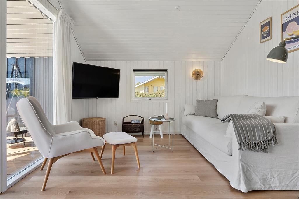Sommerhuset ligger få minutters gang fra stranden, og udenfor venter en stor sydvendt have, klar til at blive udforsket og nydt i fulde drag. Den overdækkede udestue eller terrassen indbyder til lange aftener med grillmad og samtaler under stjernerne. Alt er skabt for at lade dig koble af og finde ro i øjeblikket, mens du nyder alt, hvad sommerhuslivet har at tilbyde.
