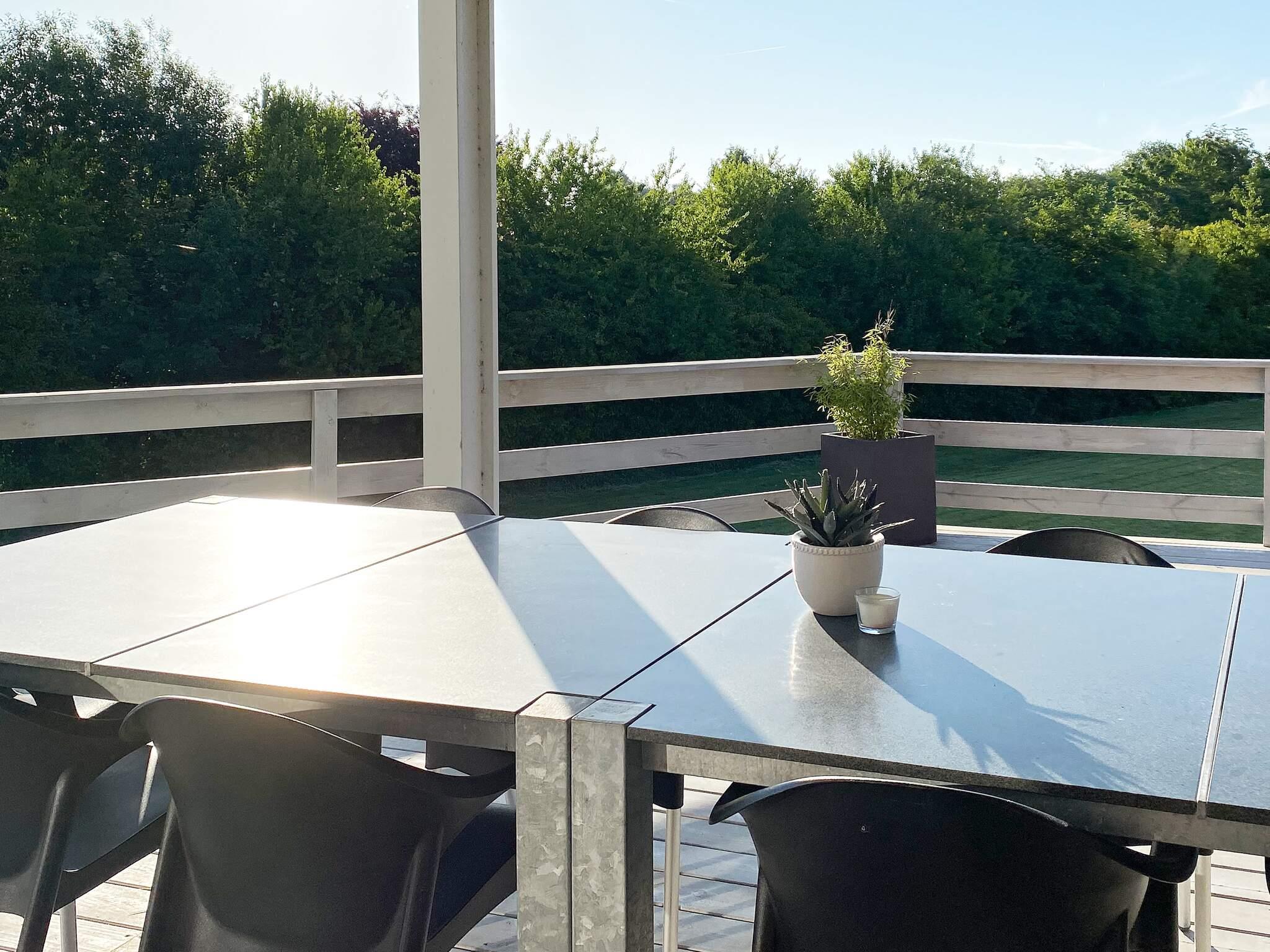 Den overdækkede terrasse er ideel til udendørs måltider og hyggelige aftener, med uhindret udsigt til det grønne omkring ejendommen. Børn kan nyde rutsjebanen ind i haveområdet eller lege på stedets gynger, mens voksne kan slappe af på solbeskinnede steder eller nyde deres eftermiddagskaffe udendørs. En skøn, børnevenlig strand ligger kun få hundrede meter fra huset, som byder på muligheder for badning, sandslotsbyggeri og badehygge.