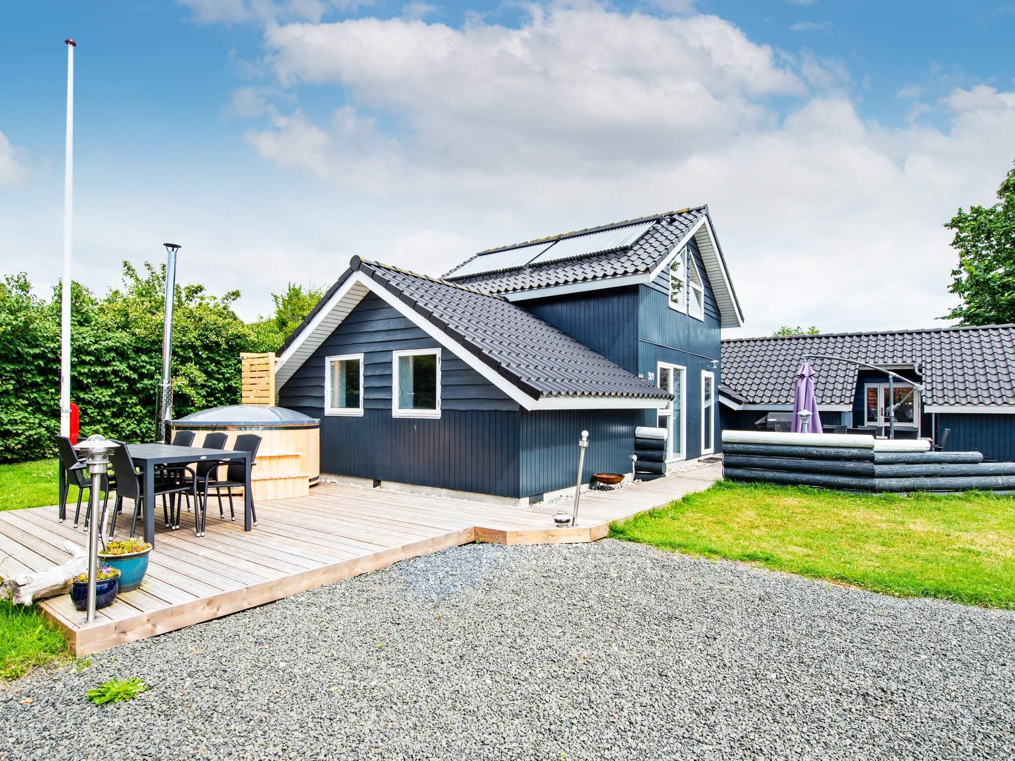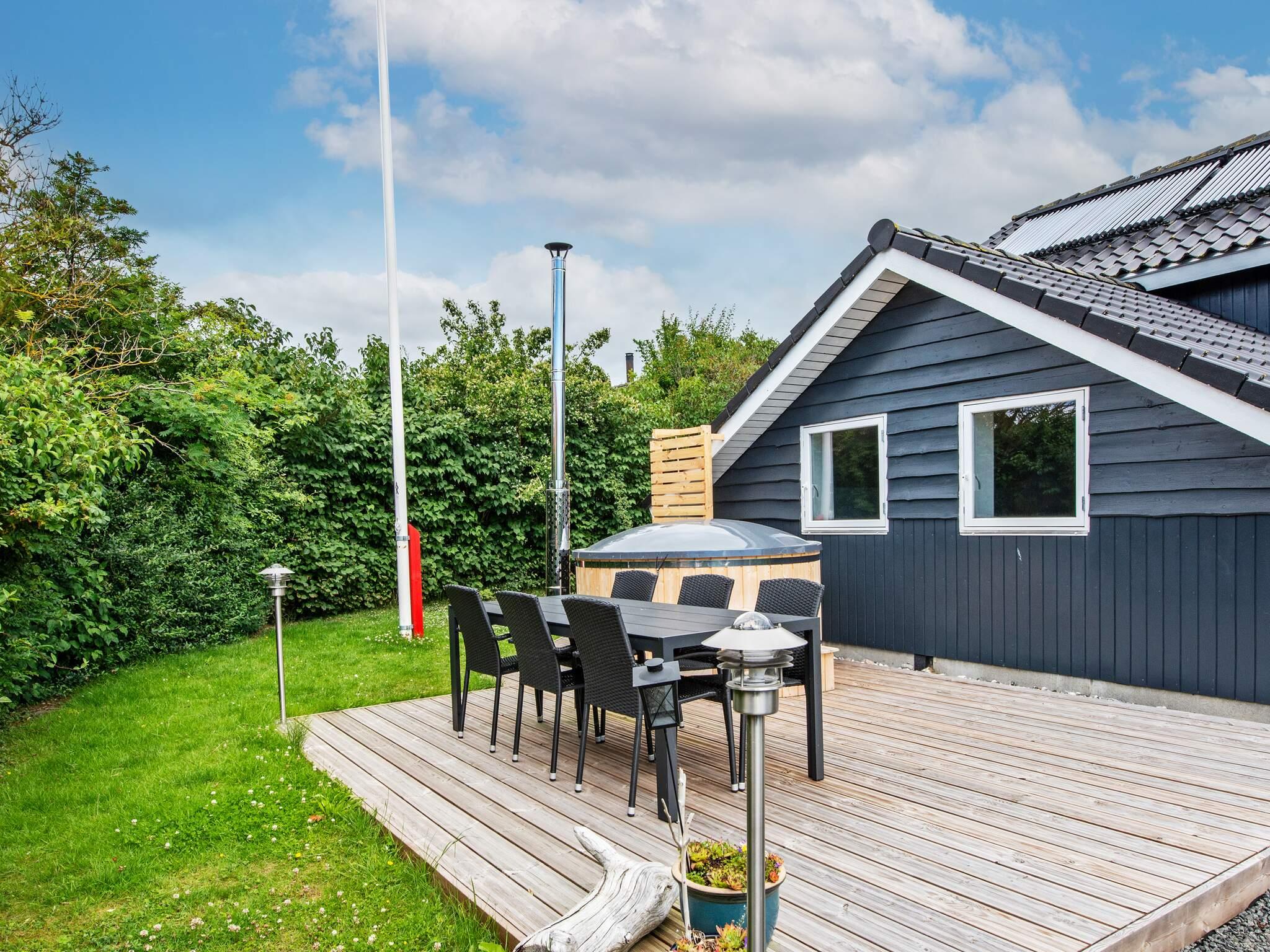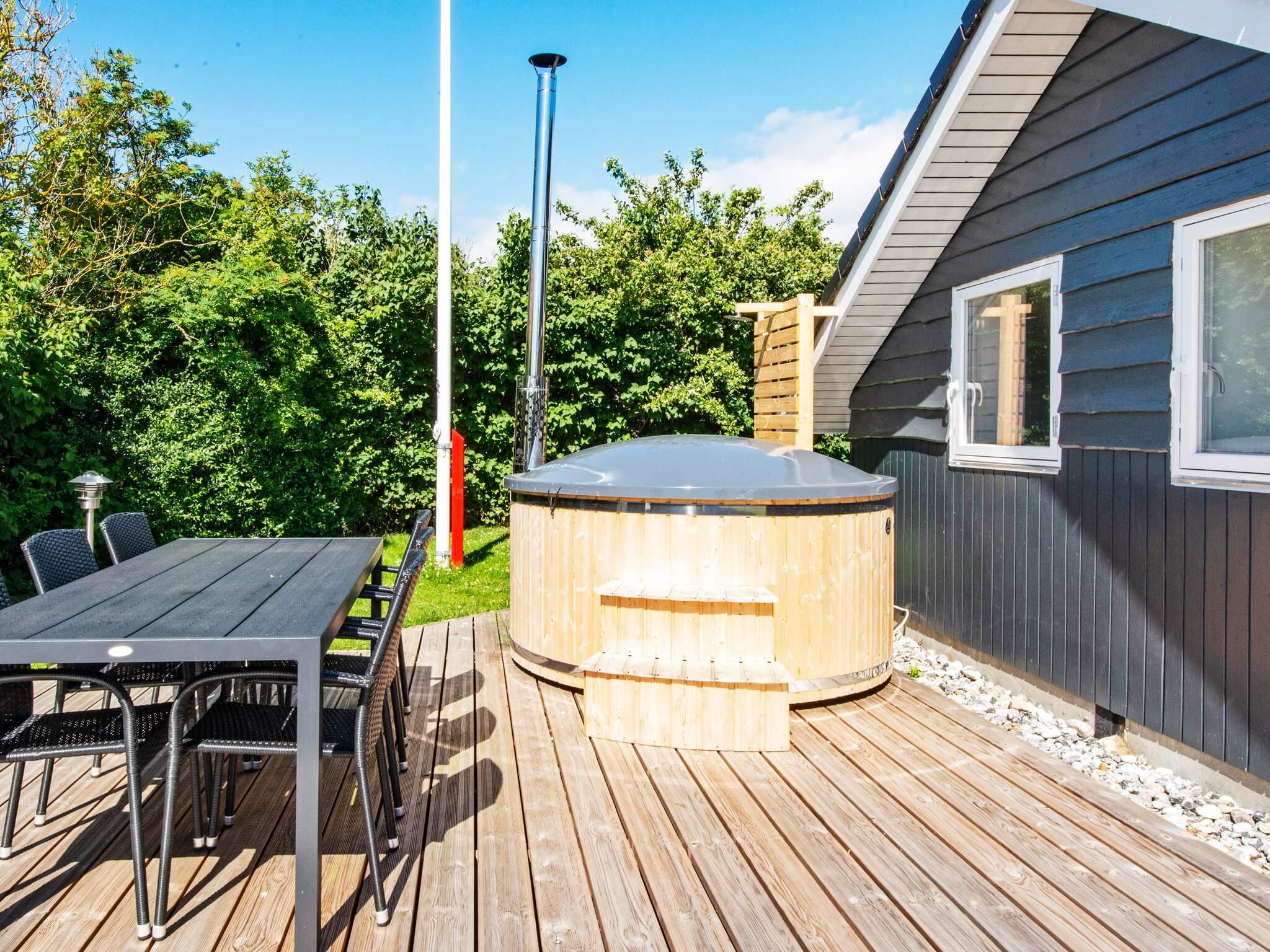 Omkring huset er der en dejlig terrasse, hvor I uforstyrret kan nyde solen eller maden fra grillen. Der er også et vildmarksbad, som skal fyldes og opvarmes med brændsel. Hvis huset har en gasgrill, skal gæsten selv medbringe gas. Hvis huset har en kulgrill, skal gæsten selv medbringe kul.