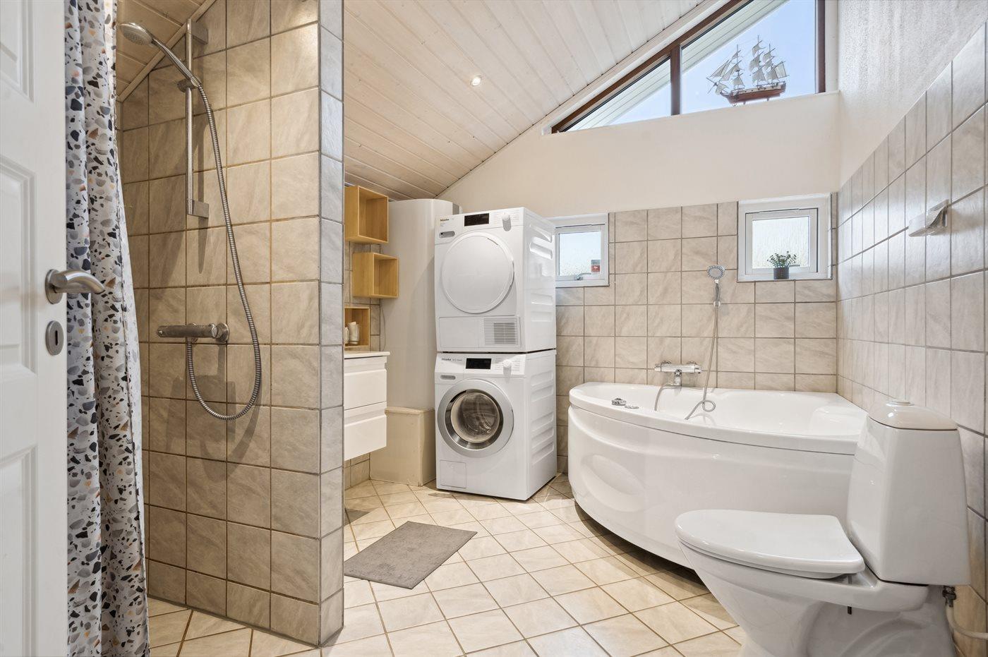 Der er 2 badeværelser med bruseniche og 2 toiletter. Der er gulvvarme på 2 badeværelser.
