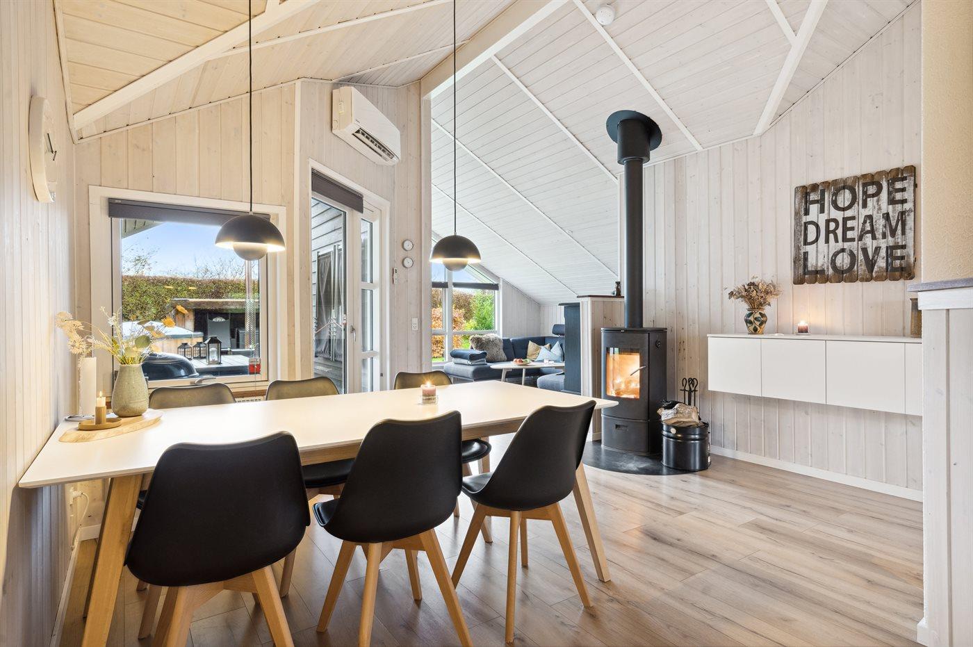 Indvendig fremstår sommerhuset i rigtig fin og velholdt stand, og indretningen er lys og moderne med en rigtig god planløsning, som passer godt til f.eks. en børnefamilie, eller du kan invitere bedsteforældrene med på ferie. Alt i alt et sommerhus, der byder på de bedste betingelser for en dejlig ferie.