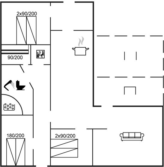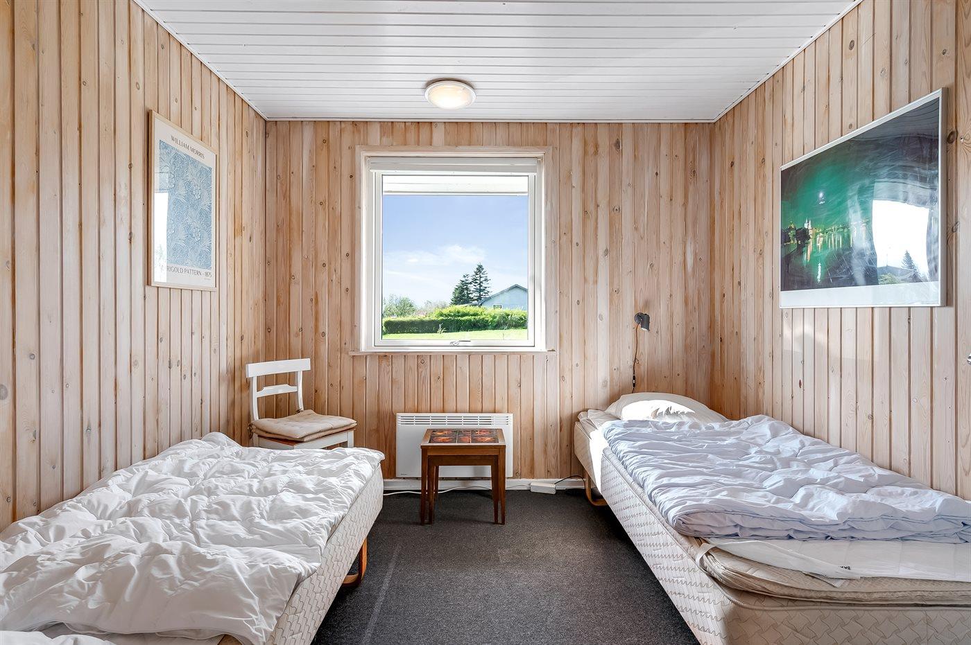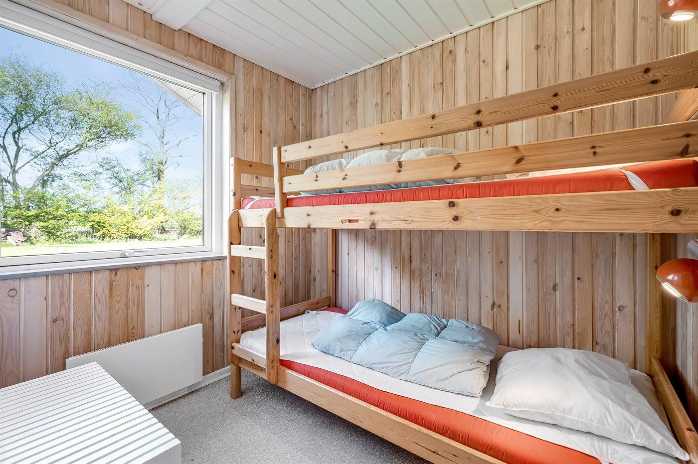 Der er i alt 4 soveværelser. Sovepladserne fordeler sig på: 2 sovepladser i dobbeltseng. 4 sovepladser i enkeltsenge. 2 sovepladser i køjeseng.