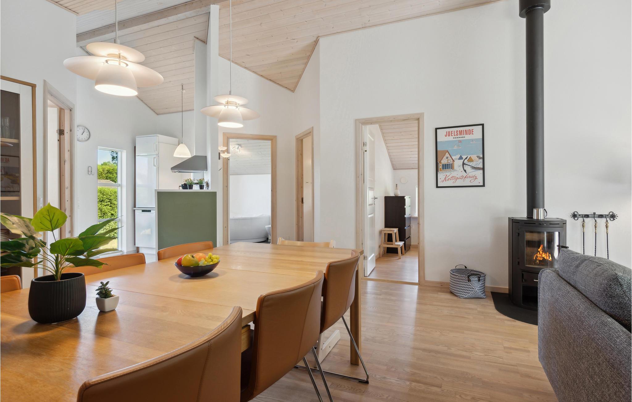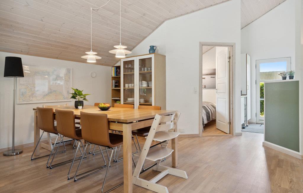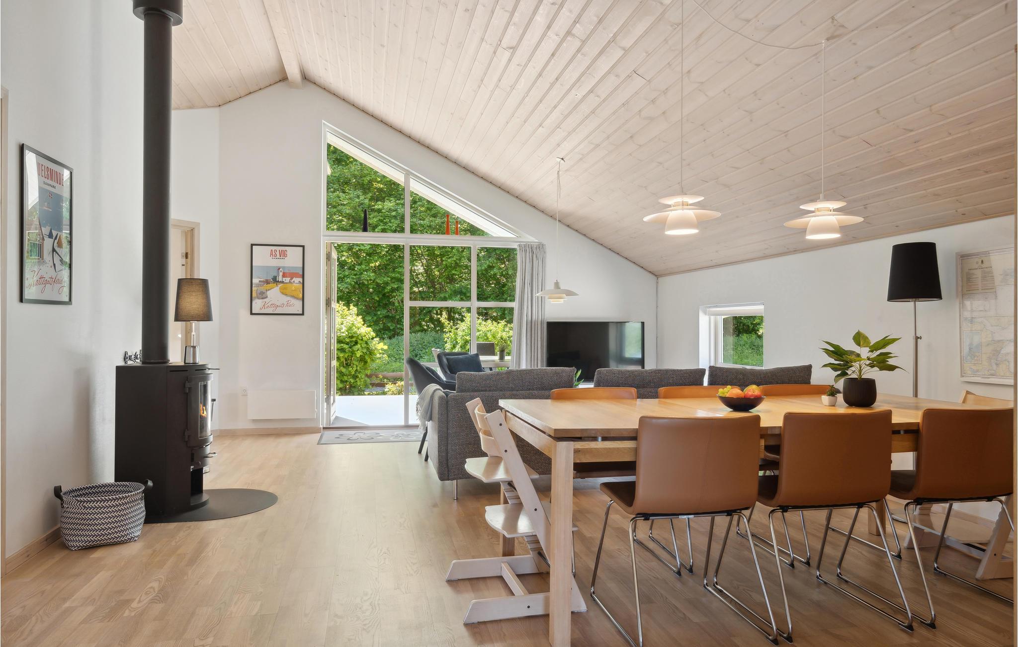 I det lille boligområde Pøt Strandby ved As Bugt finder I dette hyggelige feriehus tæt på naturen. Det attraktive hus udstråler en varm atmosfære, og udsigten til naturen gennem de store vinduer indgyder ro og harmoni. Huset er veludstyret og tilbyder alt, hvad I behøver til dejlige dage med leg, filmaftener, fælles madlavning og brætspil. Senere på aftenen kan de voksne forkæle sig selv med wellness i spabadet. Haven inviterer også hele familien til sjove stunder. Nyd måltider udenfor på terrasserne og et glas rosé sent på aftenen. I kan også planlægge næste dags aktiviteter, mens jeres børn gynger på livet løs.