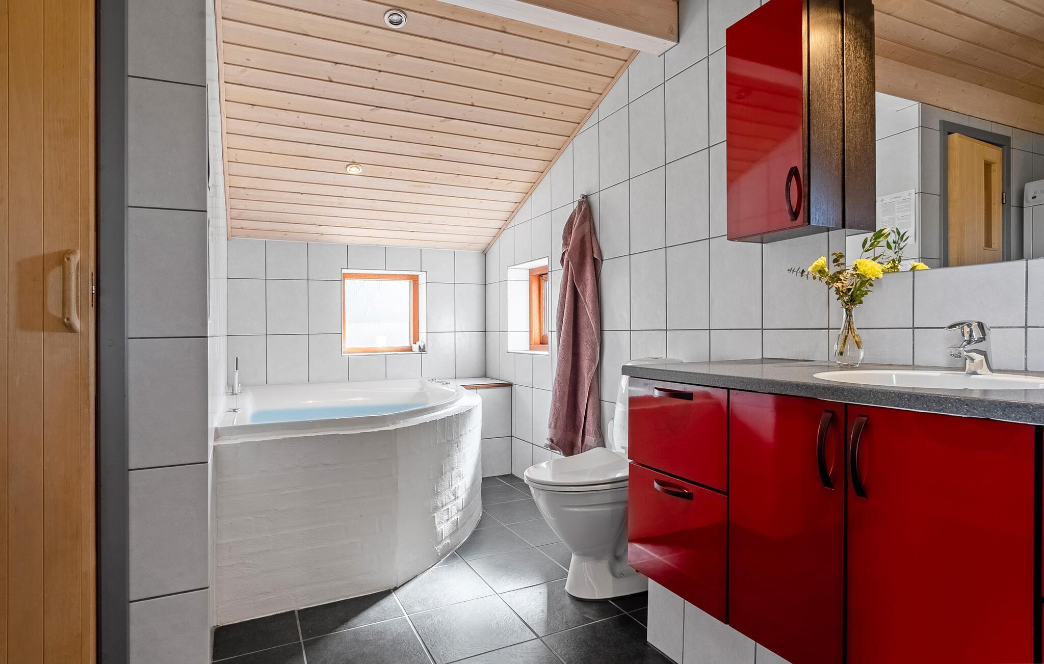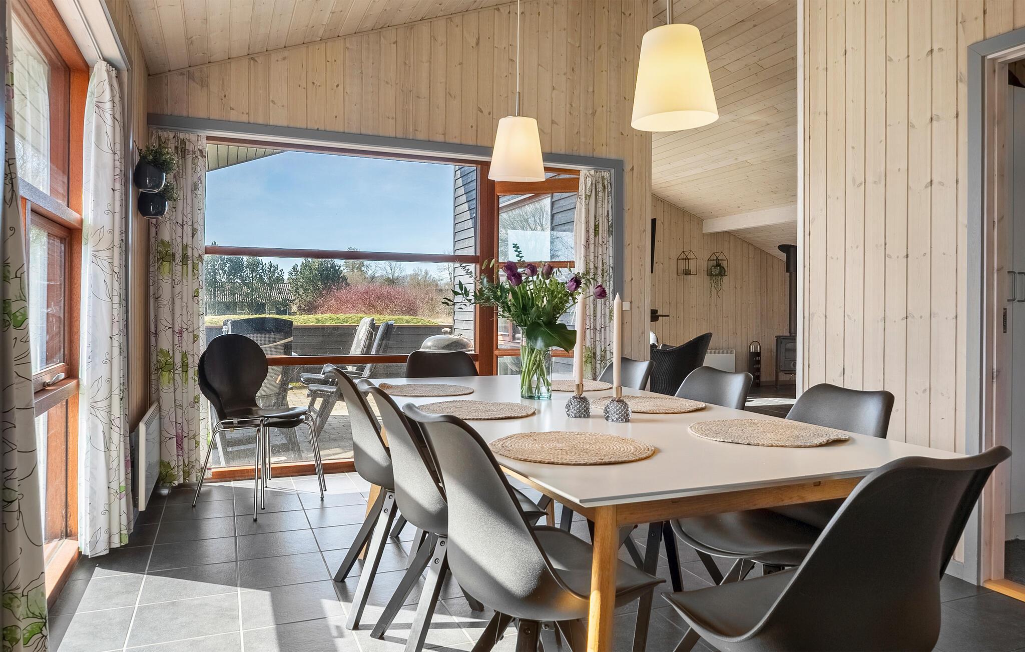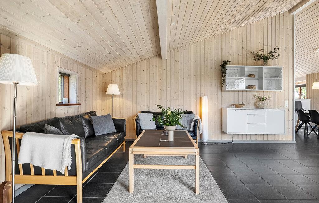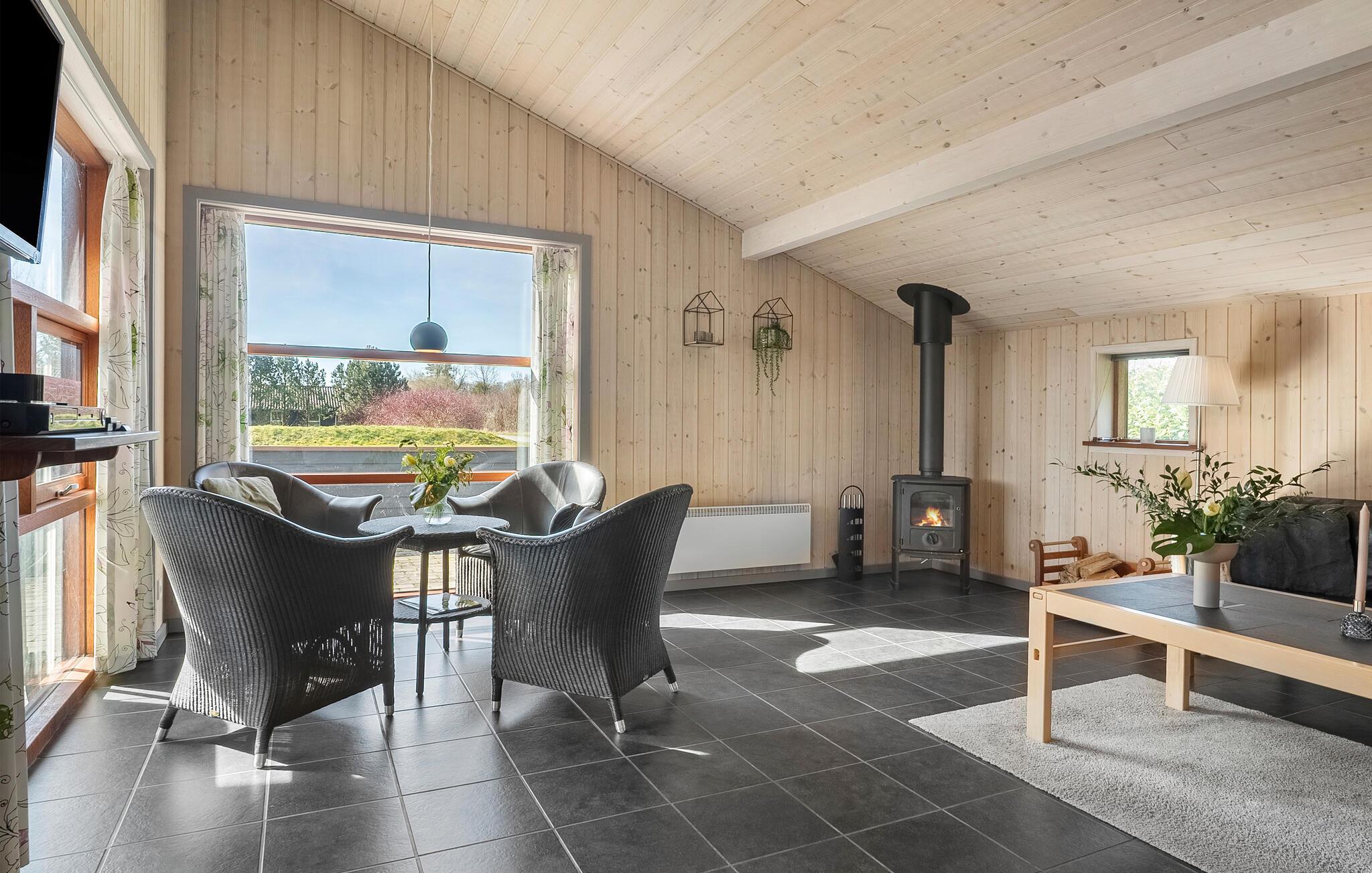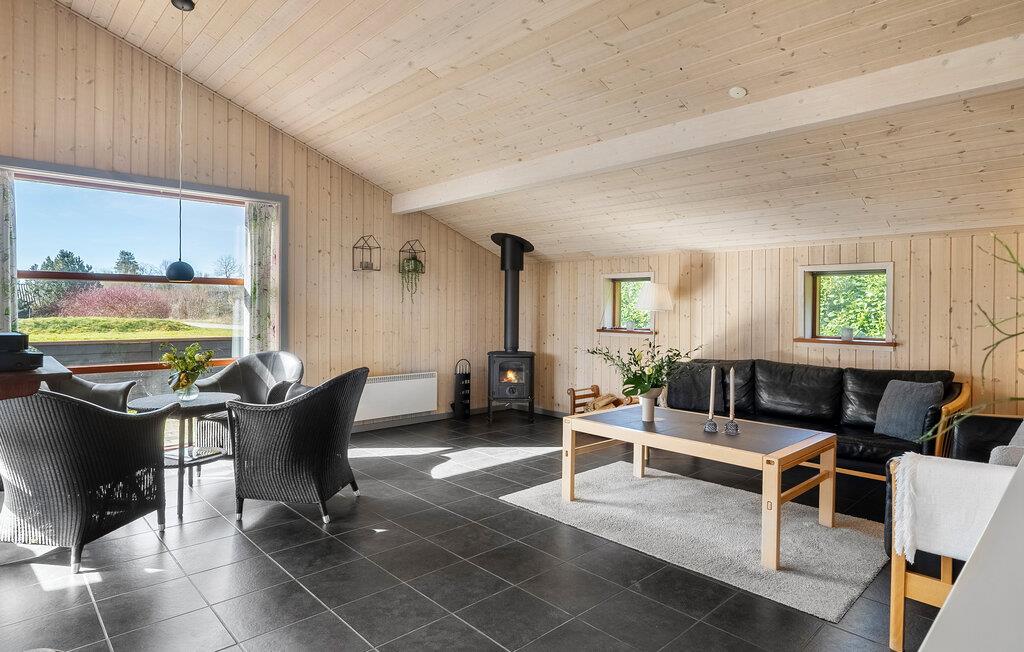 Glæd jer til den hyggelige opholdsstue med højt til loftet i træ, store vinduespartier og en hyggelig atmosfære. Find jer godt til rette i sofaen eller nyd afslappende timer foran brændeovnen. Spil kort, se en film eller bliv inspireret af udsigten til det grønne. Tilbered måltiderne i det moderne køkken og samles ved det lange spisebord til morgenmad, middag eller sociale sammenkomster. Wellness elskere vil få noget for pengene i spabadet og saunaen.