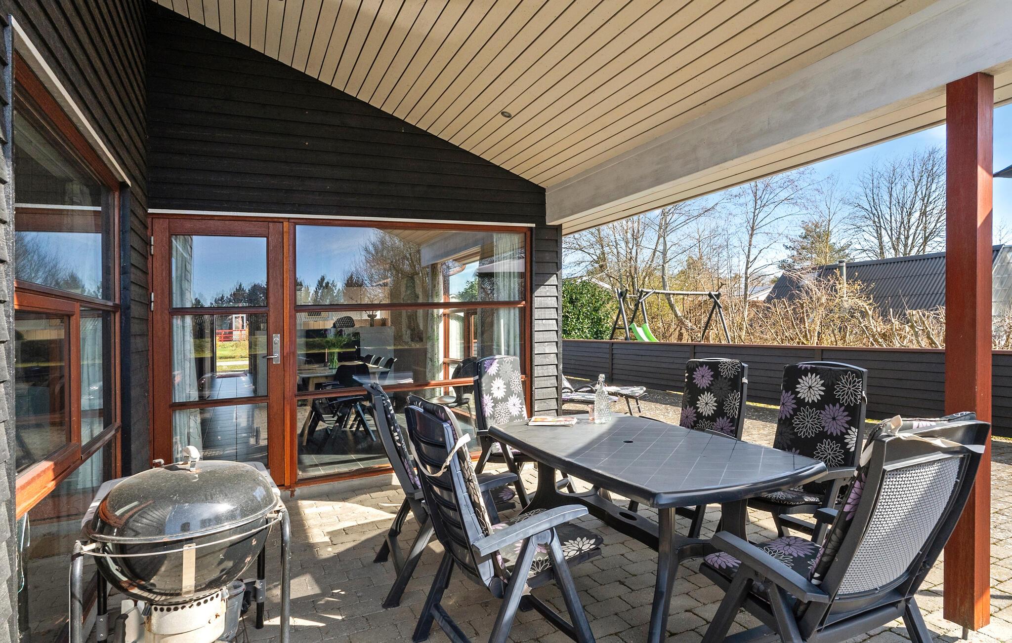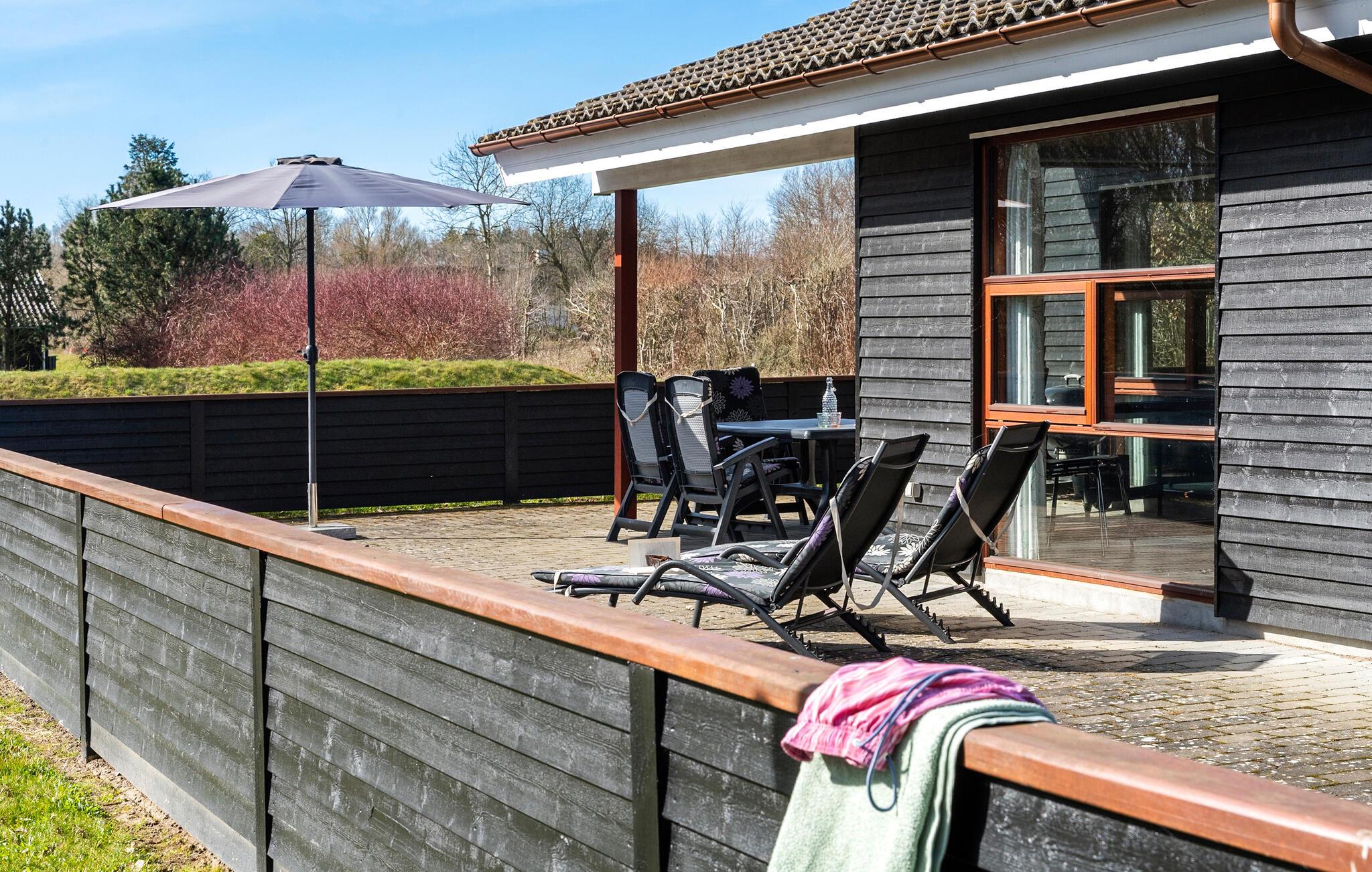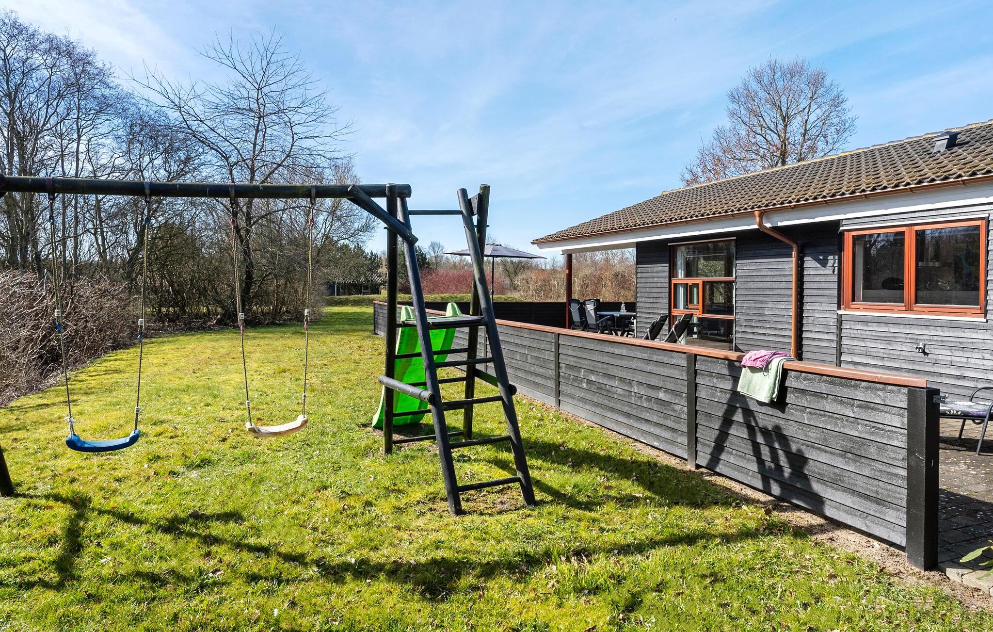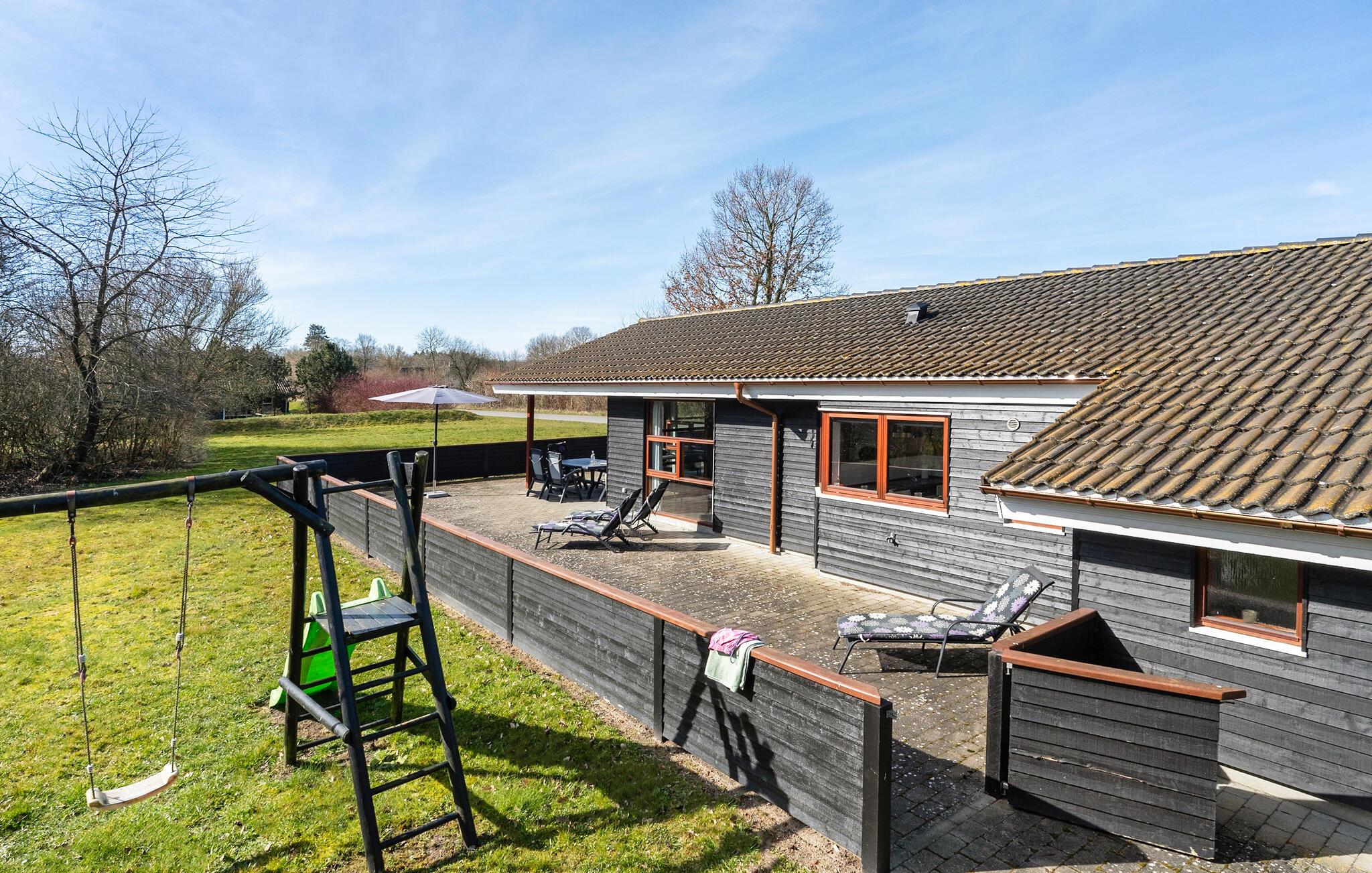 Brug det charmerende terrasseområde til en afslappet morgenmad eller en grillaften. Læn jer tilbage i de komfortable havestole eller slap af på liggestolene. børnene vil nyde gyngen og masser af plads til at lege i den beskyttede have. Den direkte adgang fra stuen til det fri skaber en behagelig feriefølelse.