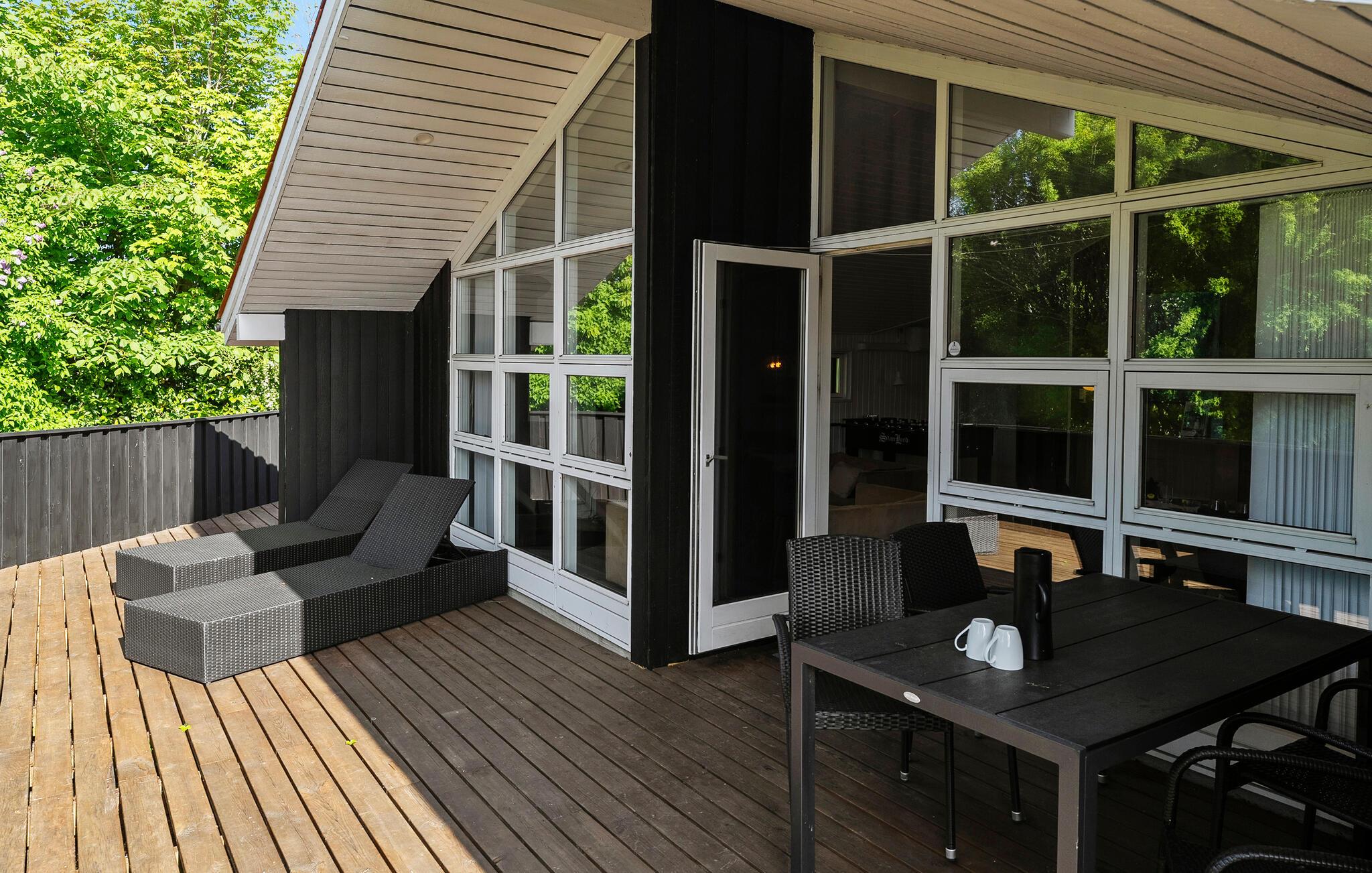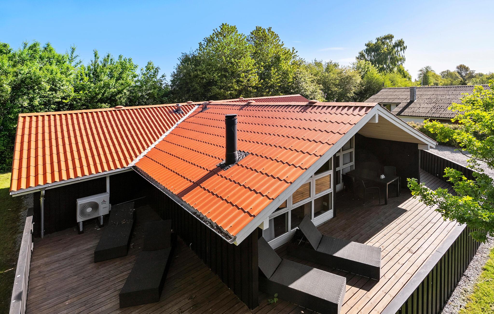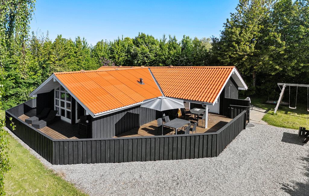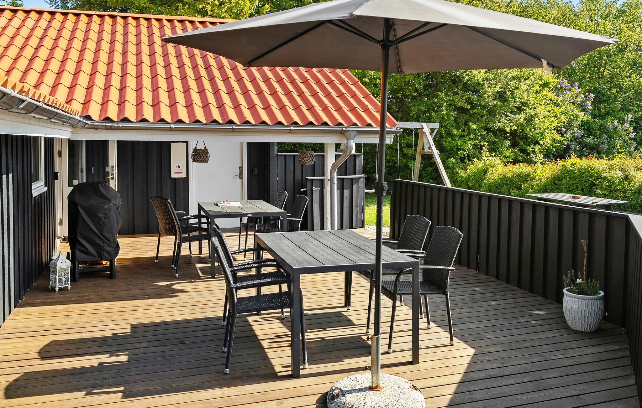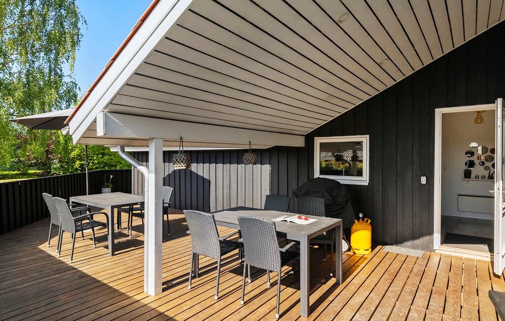 Begynd dagene med morgenmad på terrassen eller nyd aftenen med en grillmiddag. Find jer godt til rette på liggestolene, og se børnene lege på den overdækkede grund med gynger og sandkasse.