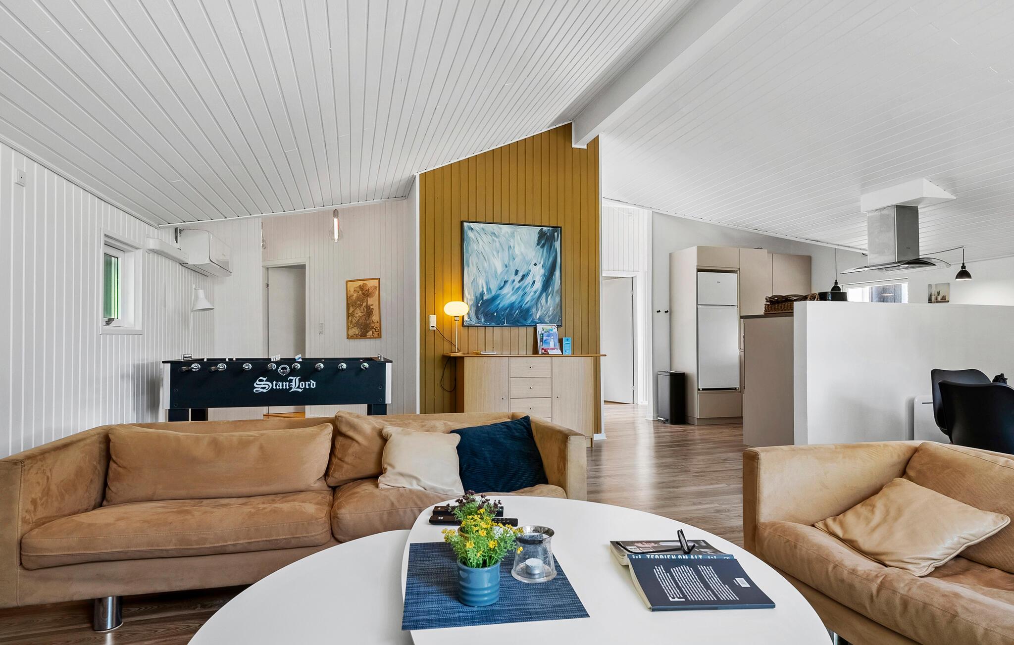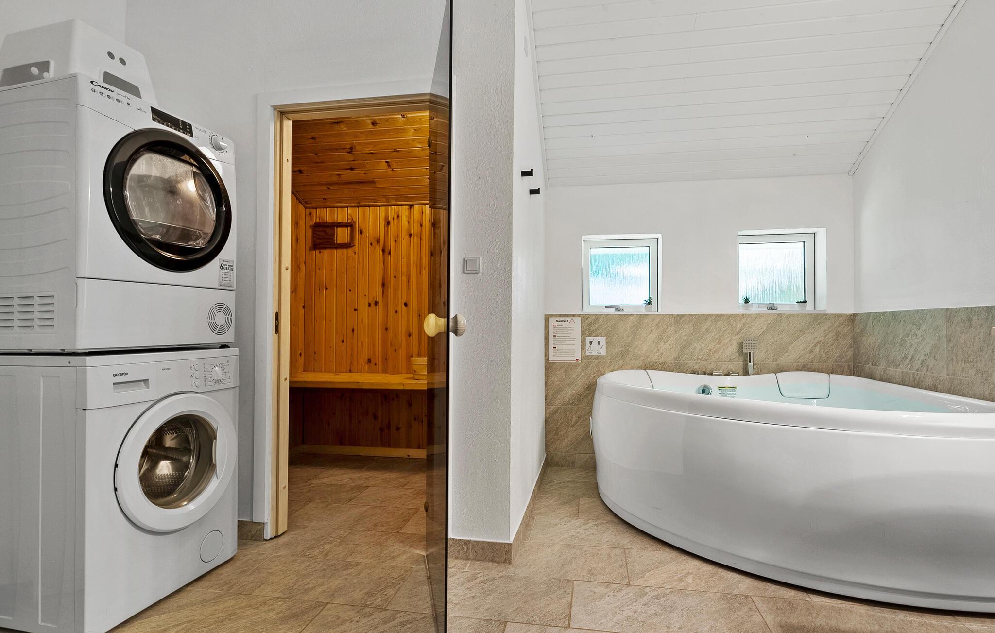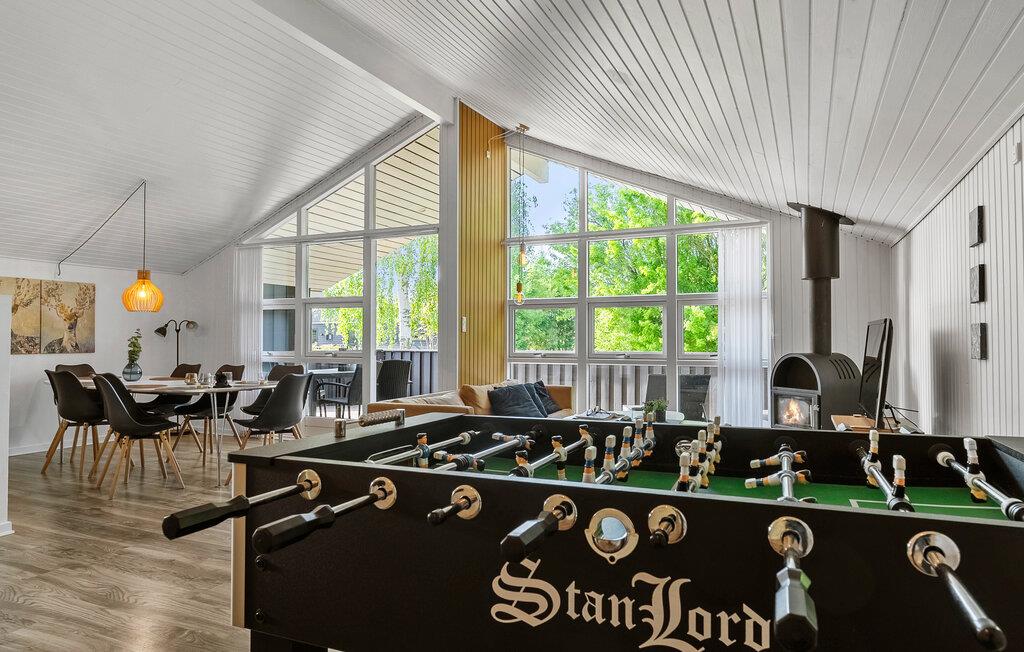 Dette indbydende feriehus tilbyder optimale betingelser for en afslappende ferie i en behagelig atmosfære. Nyd den åbne opholdsstue med dens lyse atmosfære, højt til loftet og store vinduer, der lukker masser af lys ind. Slap af på sofaen og tilbring hyggelige aftener ved brændeovnen. Spil kort sammen, se en film eller bare kig ud i haven. I det moderne køkken kan lækre retter tilberedes på ingen tid, og spisebordet ved vinduet lægger op til at dele måltider og samtaler. Slap af i hotellets sauna eller lad jer rive med af i spabadet og tilbring hyggelige timer ved bordfodbold.