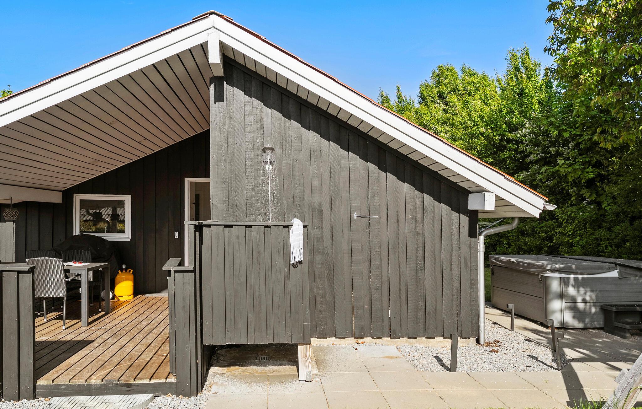 Komfortabelt træhus nær Pøt Strandby med sauna, spabad og dejlig have til afslapning.