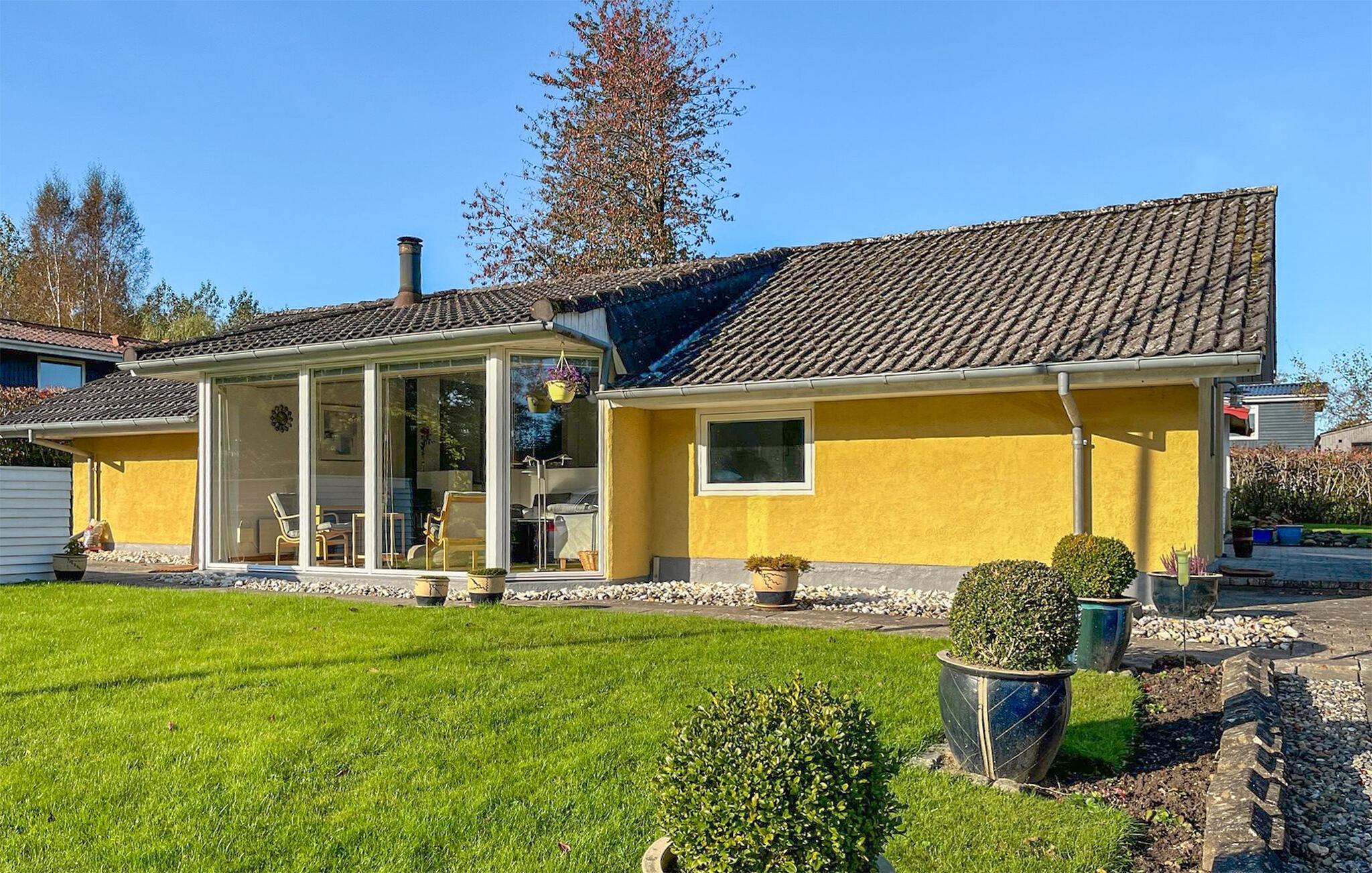 Nyd afslapning i lyst feriehus med sauna, spabad og terrasse nær strand i Pøt Strandby.