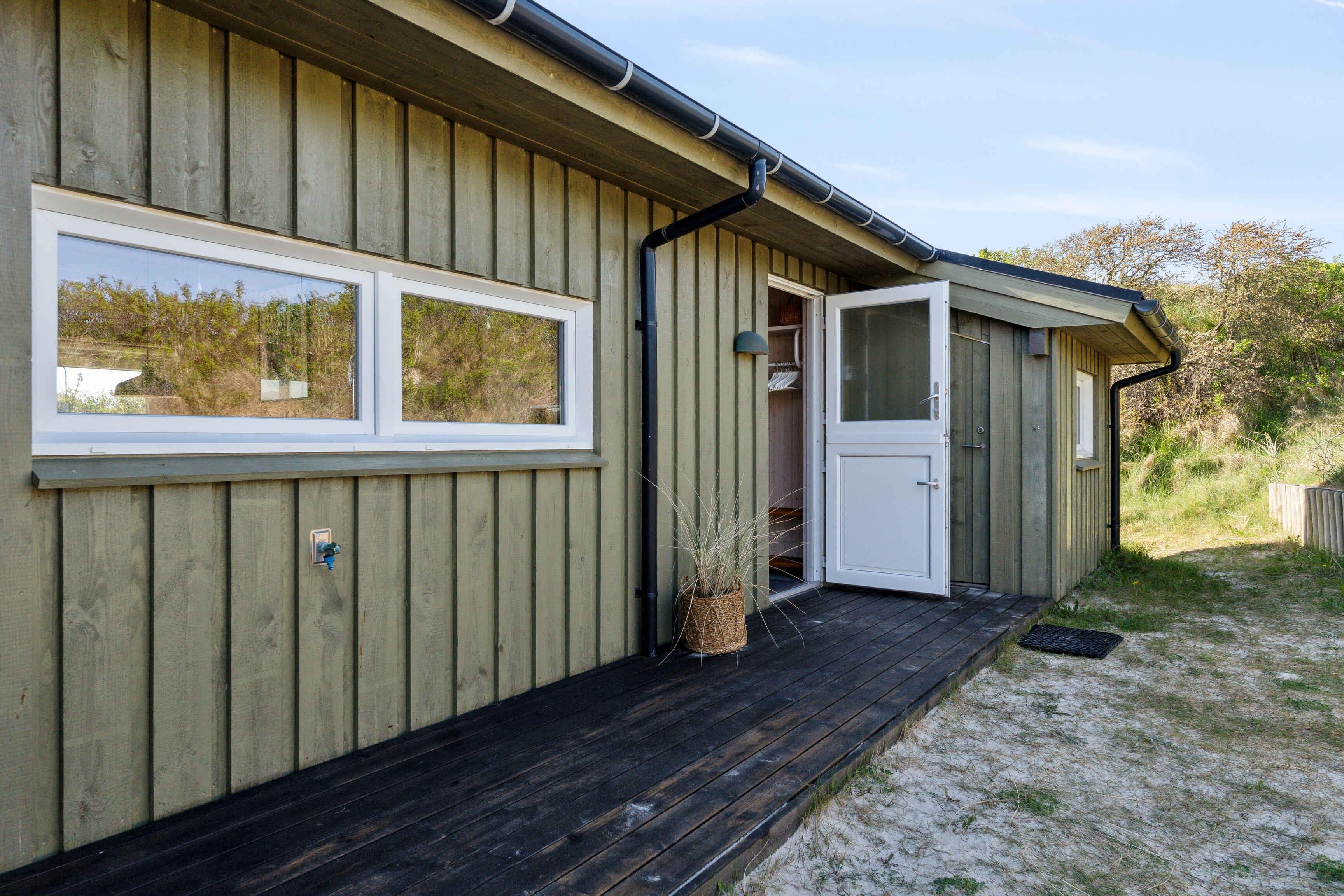 Dette hyggelige sommerhus, der er opført i 2016, er en sand perle for dig, der drømmer direkte adgang til Vesterhavets smukke natur. Beliggende i første klitrække har huset en privat klitgrund, hvor du fra toppen af klitten kan nyde den betagende udsigt over havet og det storslåede landskab. Huset er indrettet med tre gode værelser, der giver plads til hele familien eller gæster. Det åbne køkken/alrum er hjertet i boligen og byder på et smukt lysindfald, der skaber en lys og luftig atmosfære. Her er rig mulighed for samvær, mens man kan nyde udsigten gennem de store vinduespartier. Badeværelset er moderne og lækkert indrettet med kvalitet for øje. Udenfor finder du store syd- og vestvendte terrasser, hvor du kan nyde solen dagen lang og slappe af med lyden af havets bølger i baggrunden. Den fantastiske beliggenhed gør dette sommerhus til et unikt fristed for naturelskere og livsnydere, der ønsker en kombination af moderne komfort og uspoleret vestkystidyl. Udebruseren vil være utilgængelig i periode mellem november-marts samt derudover ved risiko for frost. Obs, udlejes ikke til erhversmæssigt brug.