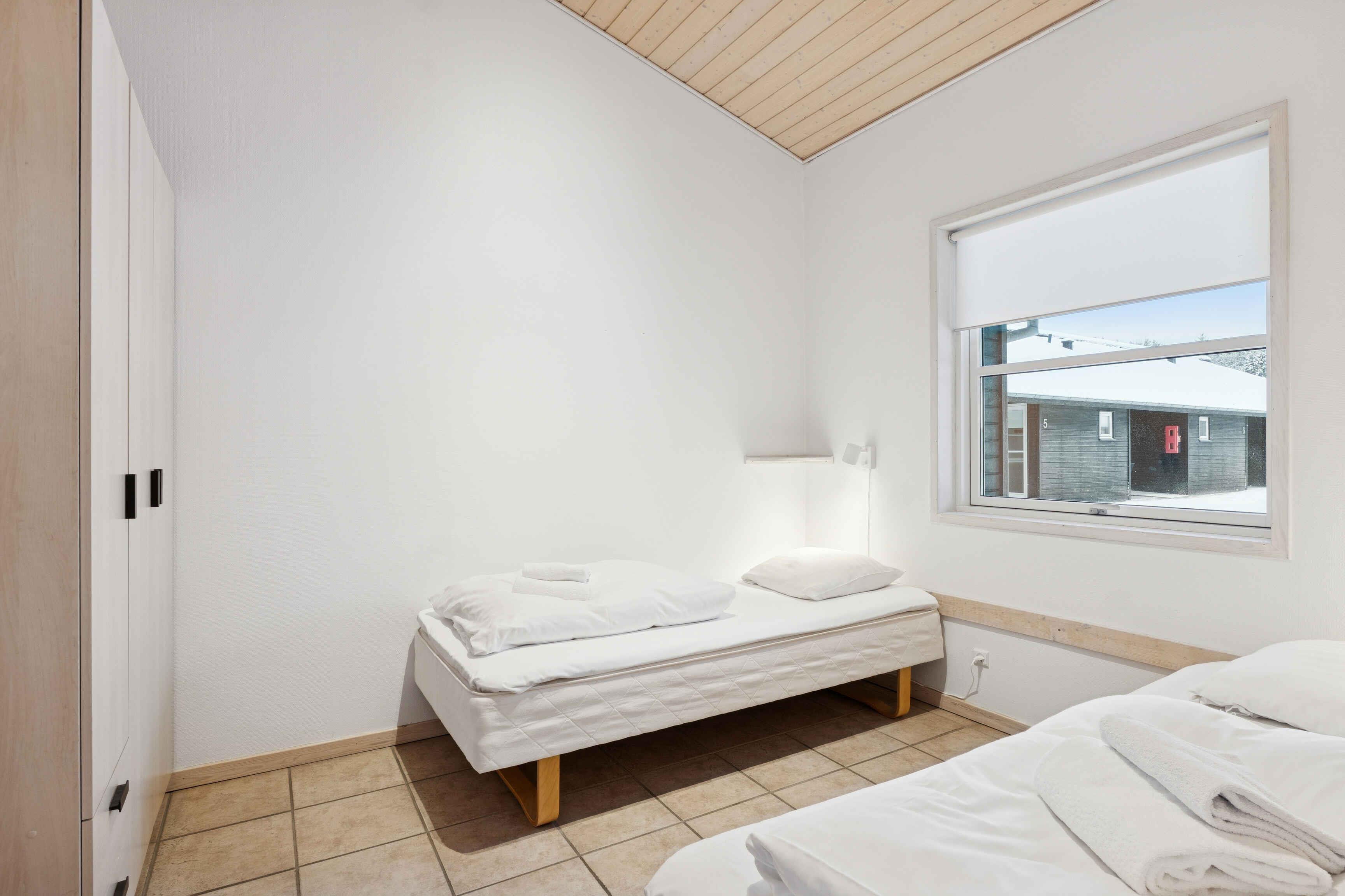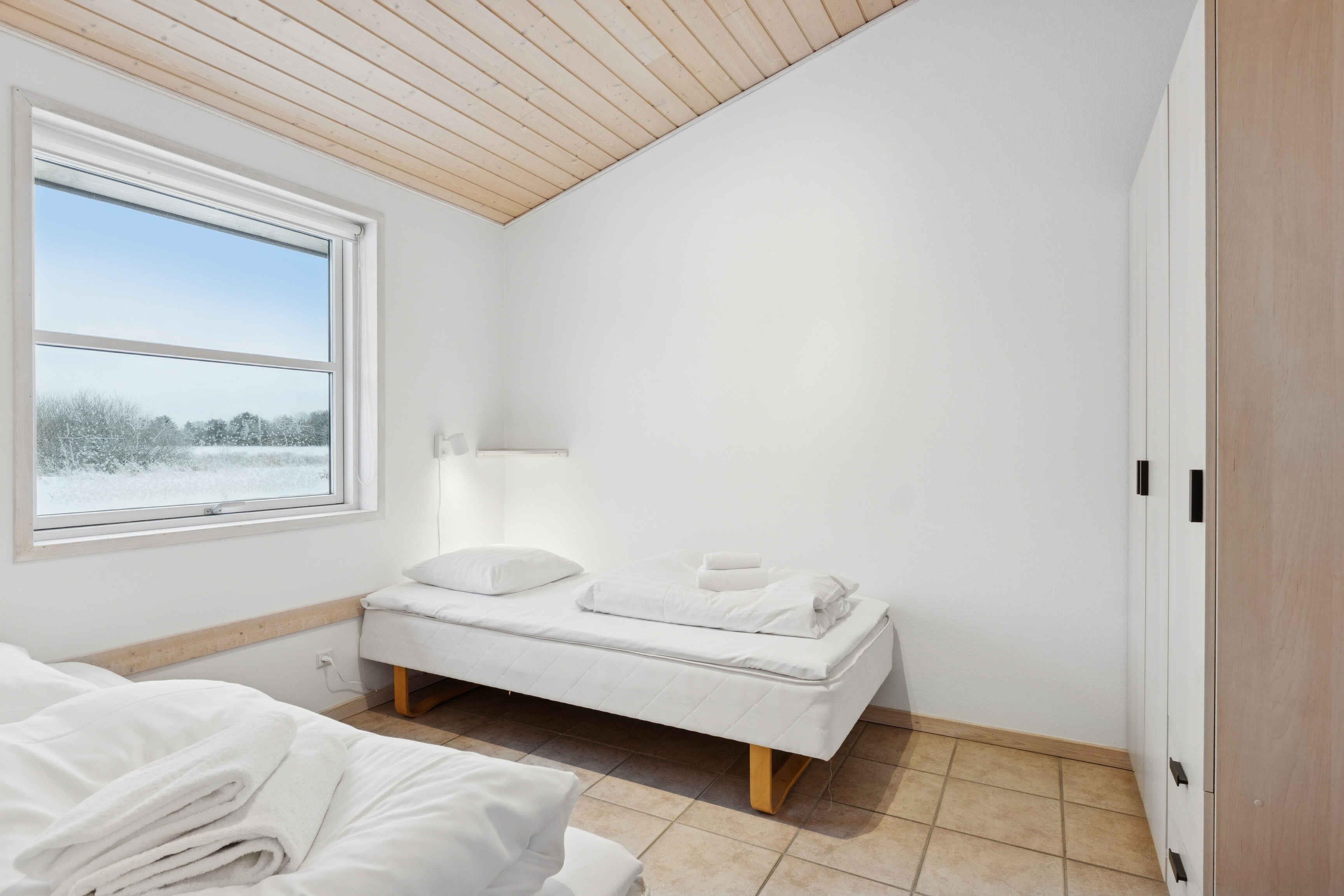 Lejlighed til fire personer med to soveværelser og åben planløsning med køkken og stue. Tæt på Vesterhavet og stranden. Golfbane lige udenfor døren samt gode muligheder for cykling, vandring og cafébesøg.
