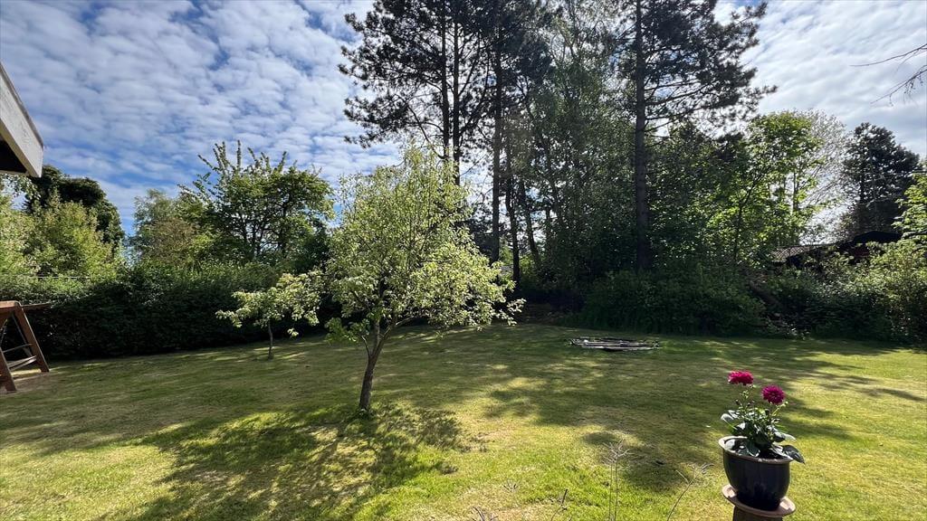Her er to delvist overdækkede terrasser med udgang fra stuen og entreen og en stor have med god kantbeplantning. Her kan I nyde de varme dage og lune aftner og når duggen falder, kan I trække ind under overdækningen og nyde stilheden og lade roen sænke sig. OBS! I foråret 2025 bliver der lavet ny træterrasse hvor den nuværende terrasse er placeret. Den nye træterrasse vil gå videre rundt om gavlen langs solsiden af huset.