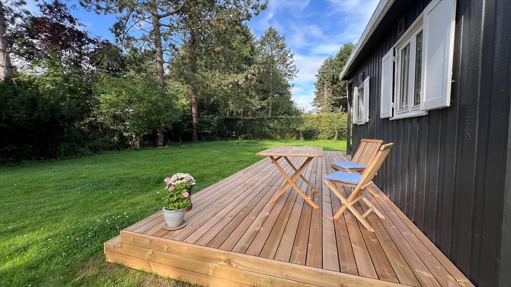 Her kan I nyde ferien i dejlige og hyggelige omgivelser og med kun 400 meter til vandet, via stisystem.