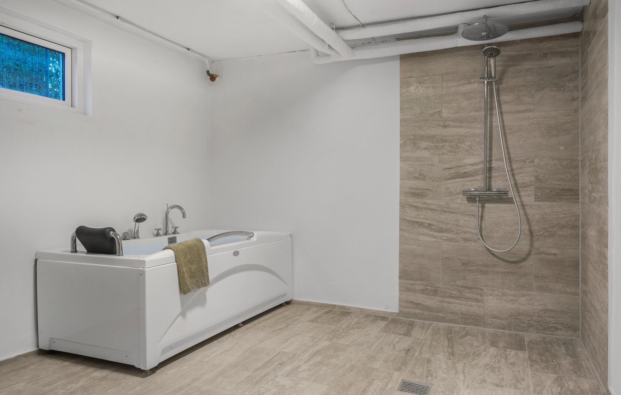 Badeværelse (nr. 1) - WC. Varmt og koldt vand. Bruser og badekar