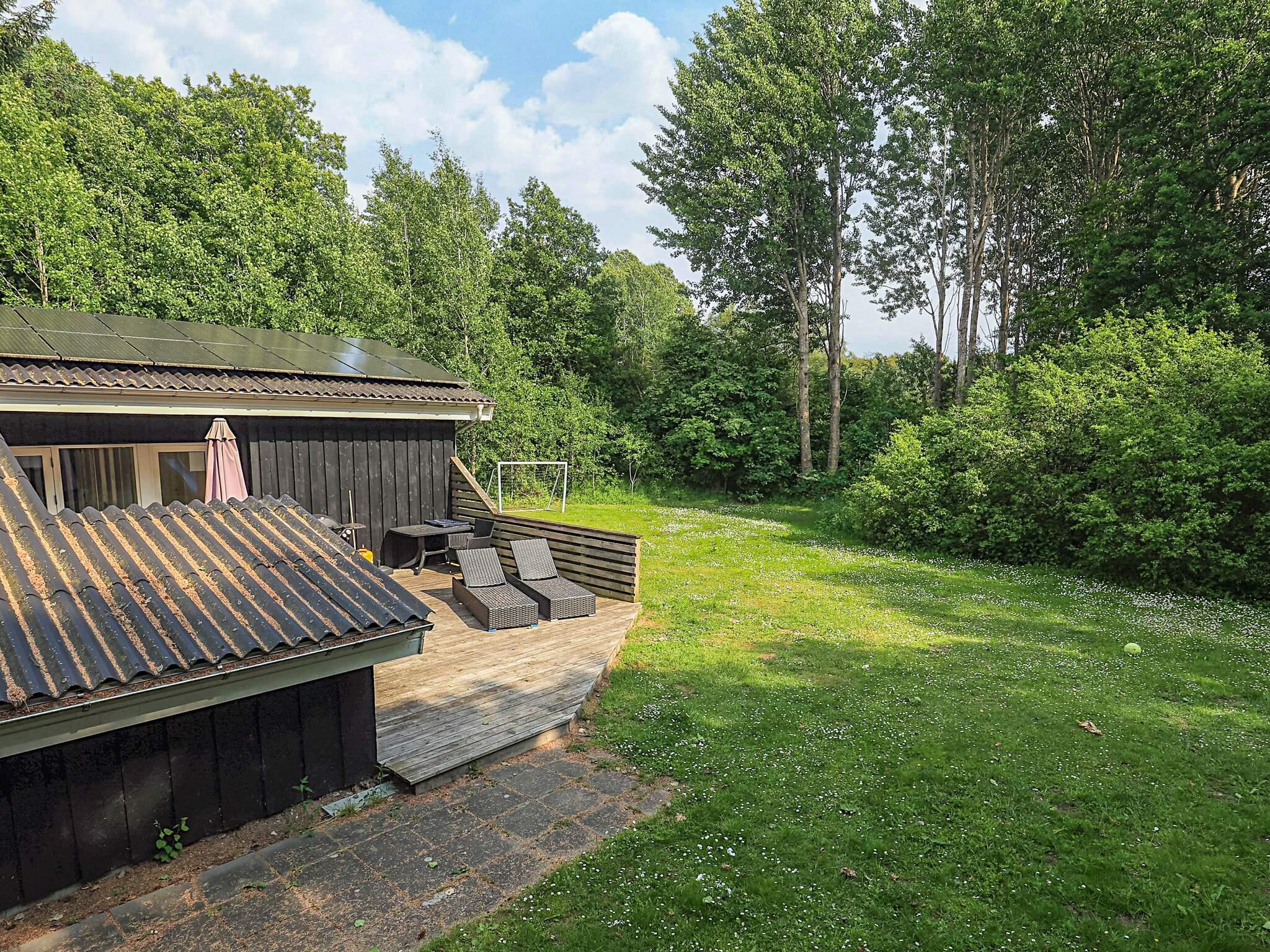 Udendørsområdet er designet til børn, med gynger, en sandkasse og et fodboldmål. Både voksne og børn kan nyde den sydvendte terrasse, ideel til solbadning og afslapning. Ejendommens unikke beliggenhed gør den perfekt til afslapning, solskin, strandture, aktiviteter og naturoplevelser.