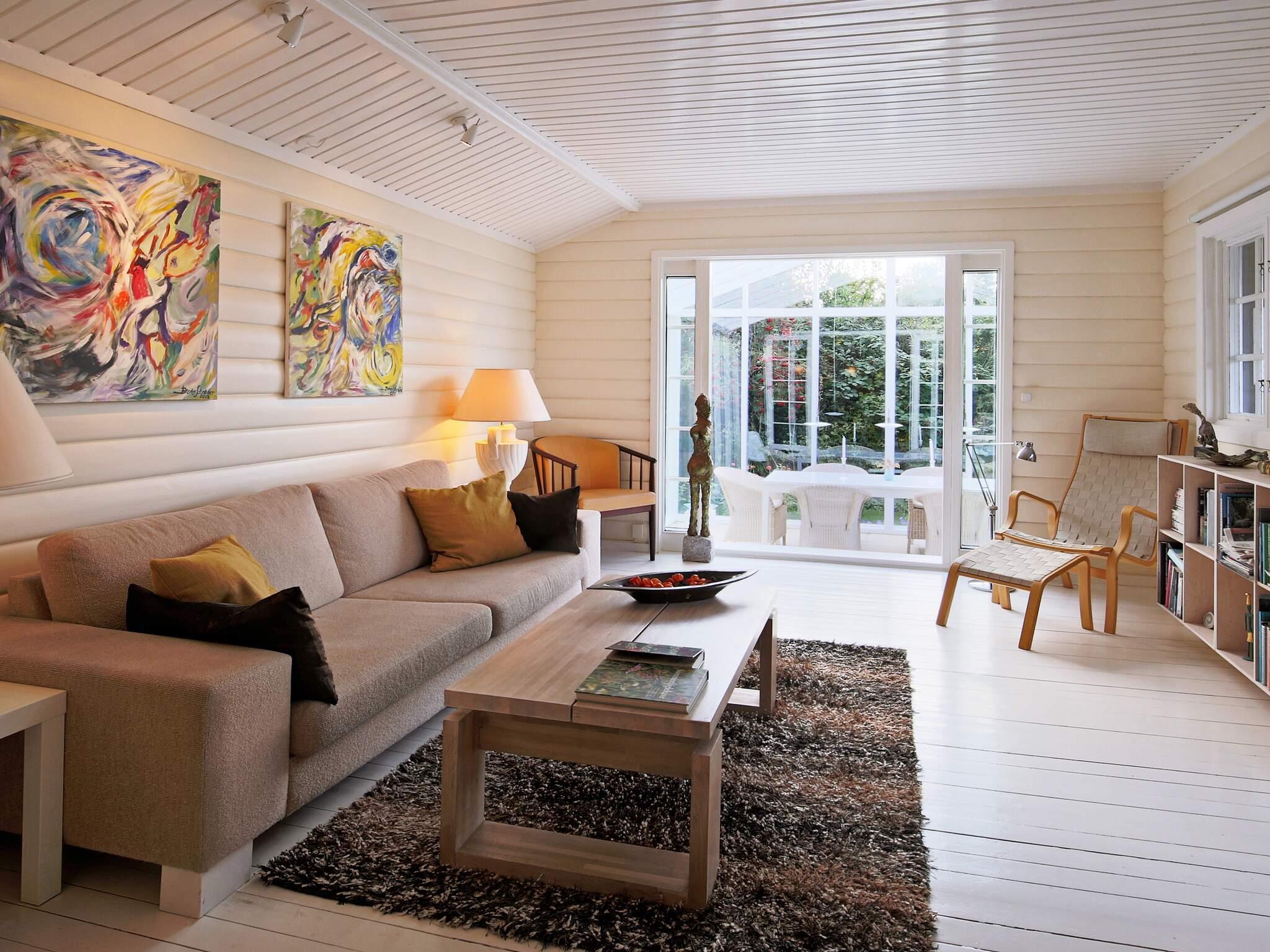 Indvendigt byder boligen på køkken og opholdsstue i åbent plan med spise- og siddepladser designet til familielivet. Den lyse udestue udvider boligarealet og bringer naturligt lys ind, hvilket skaber en varm og indbydende atmosfære. Huset opvarmes med en miljøvenlig luft-til-luft varmepumpe og en hyggelig brændeovn, hvilket gør det behageligt selv på køligere aftener. Interiøret er smagfuldt indrettet, der kombinerer stil med funktionalitet. Køkkenet er fuldt udstyret med gaskomfur, køleskab med fryser, kaffemaskine og opvaskemaskine. Der er et badeværelse med bruser og tre soveværelser: et med dobbeltseng, et med en enkeltseng og et med en dobbelt sovesofa.