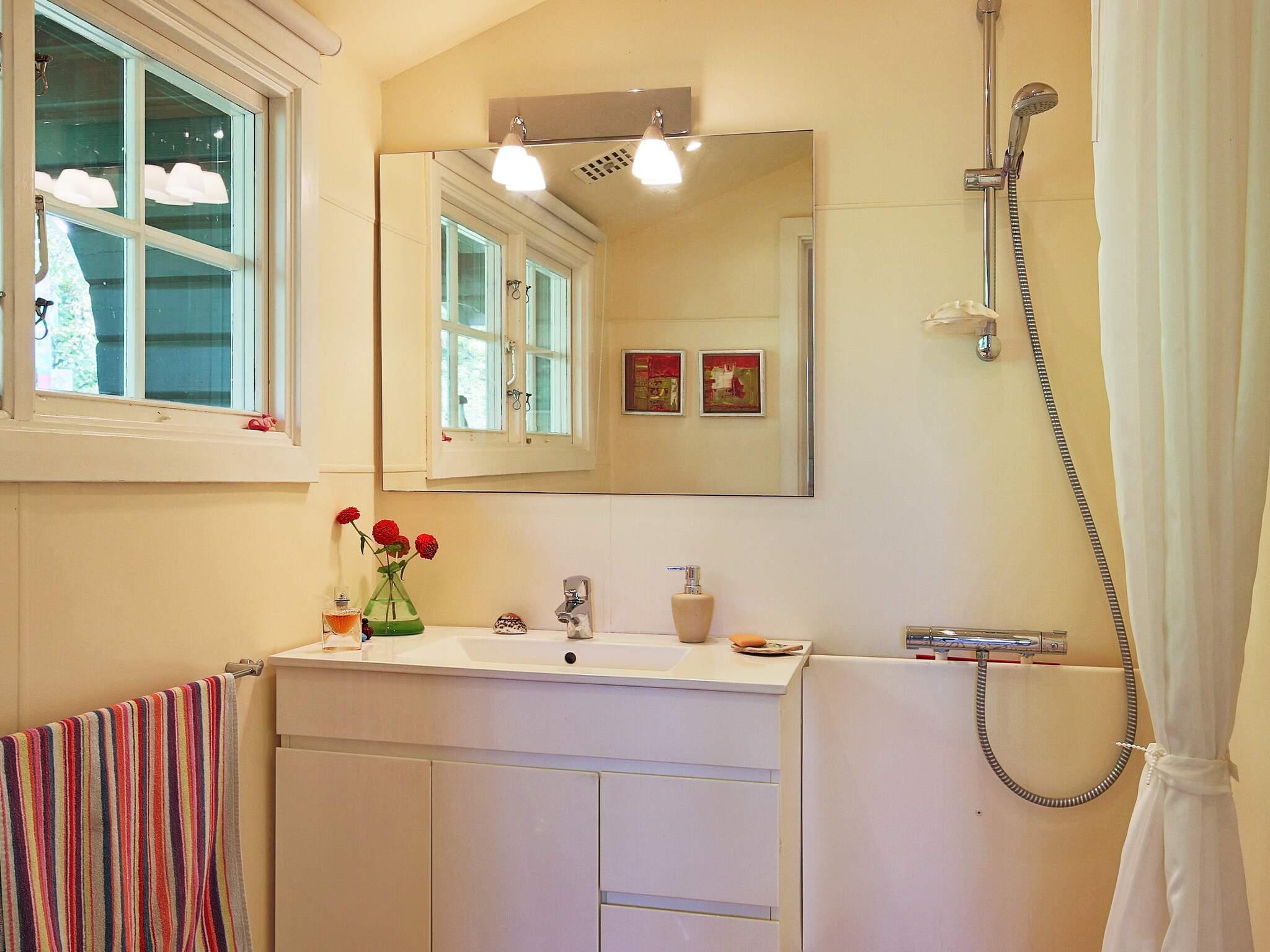 Bad/wc: Vaskemaskine, wc, håndvask, bruseniche