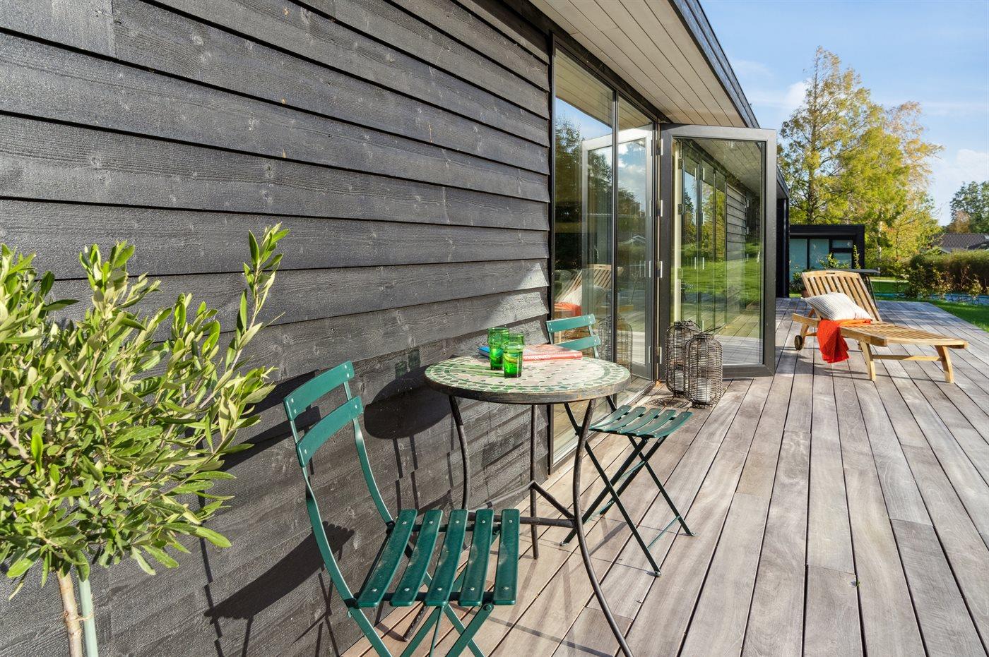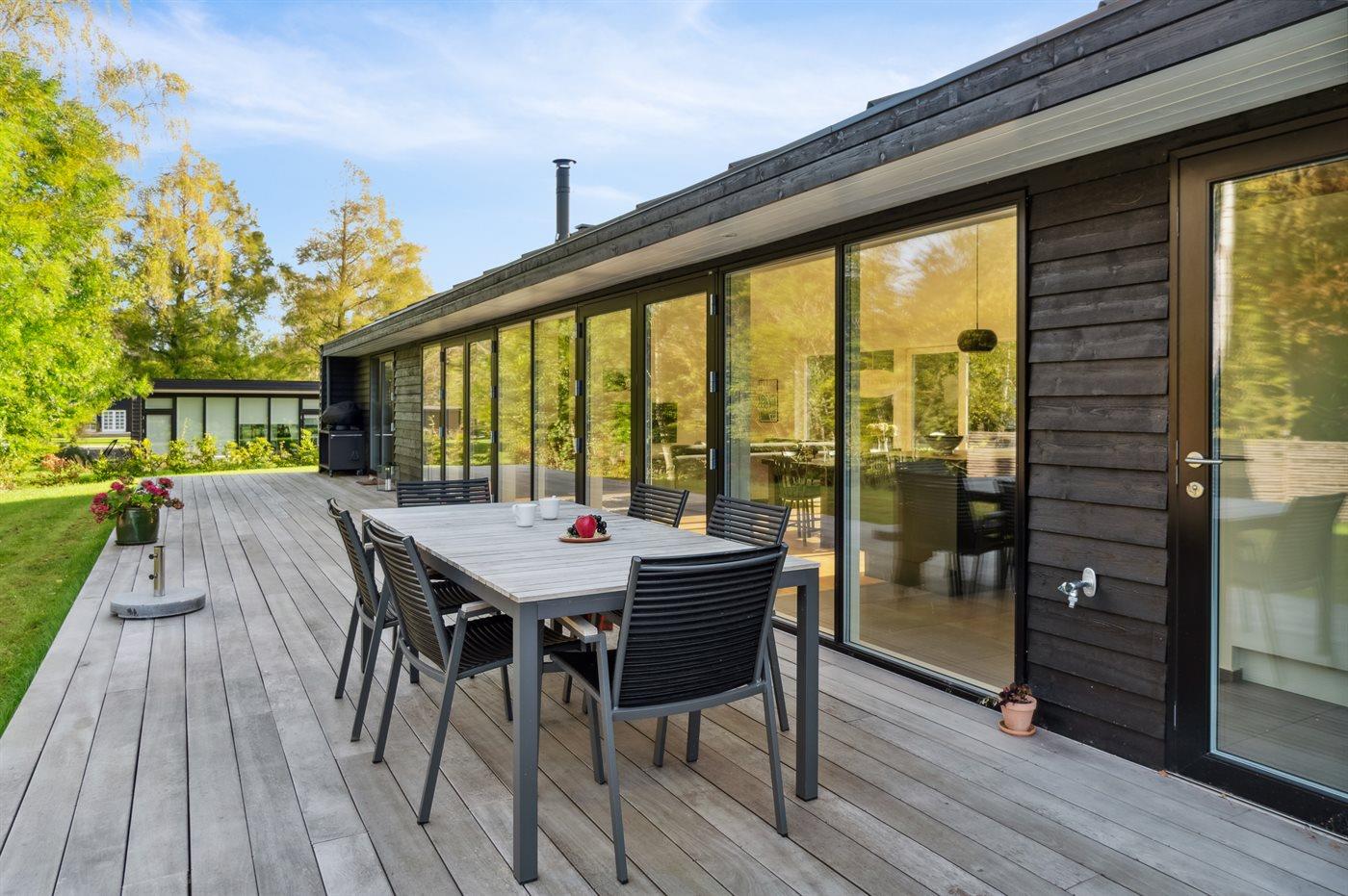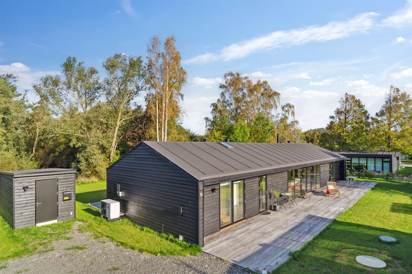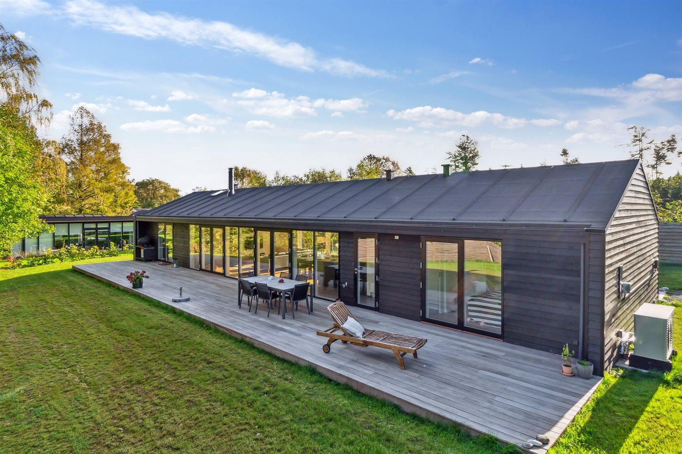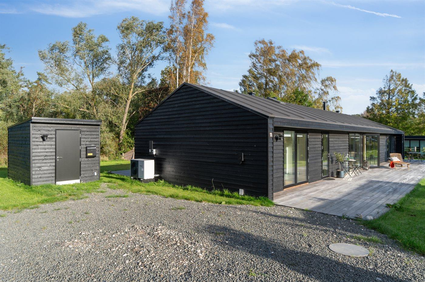Moderne sommerhus med sø, elbiloplader og terrasse
