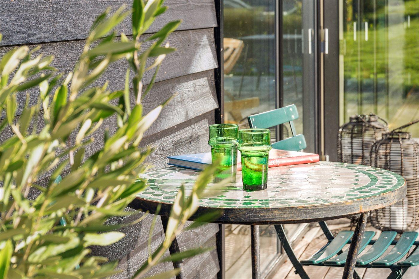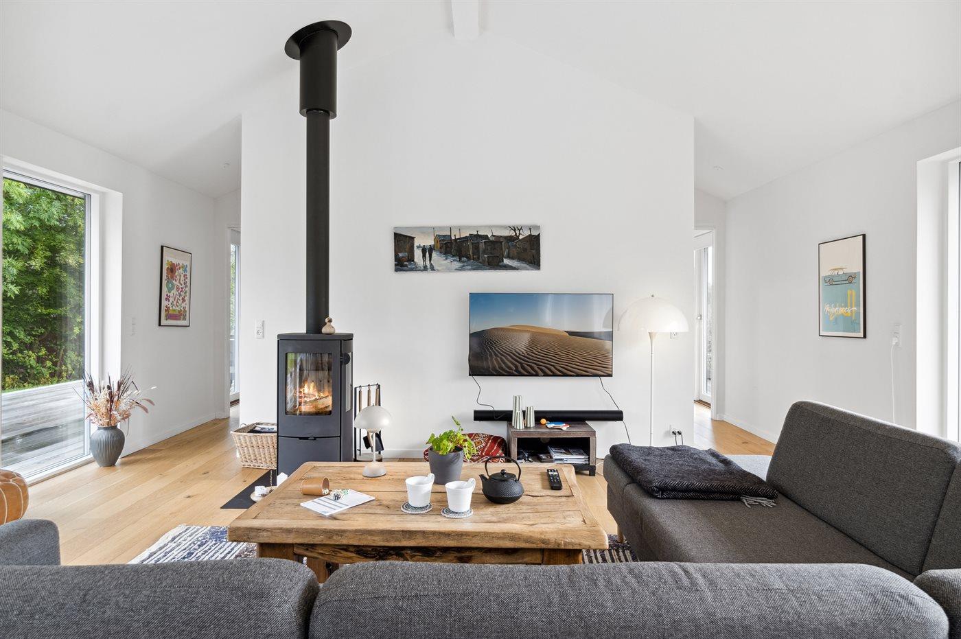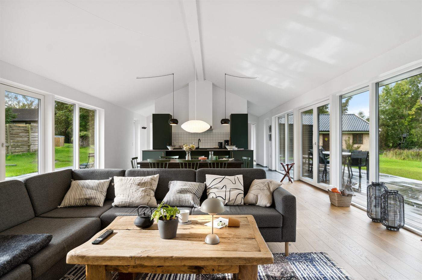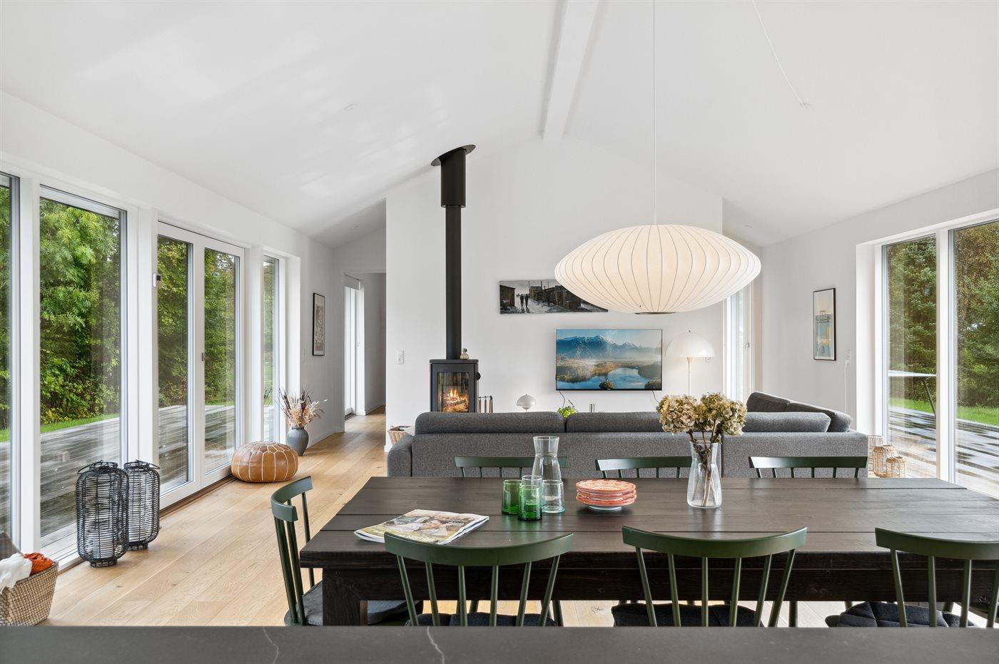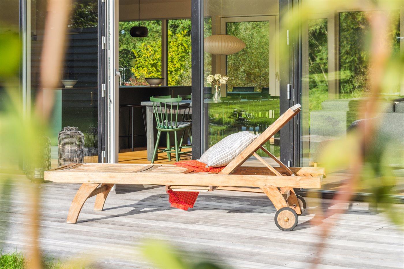 Moderne sommerhus med sø, elbiloplader og terrasse