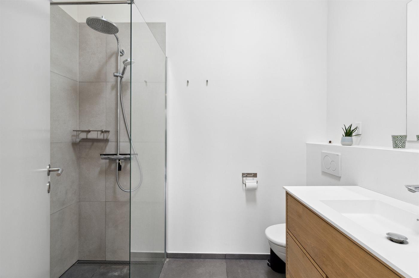 Der er 2 badeværelser med bruseniche og 2 toiletter. Der er gulvvarme på 2 badeværelser.