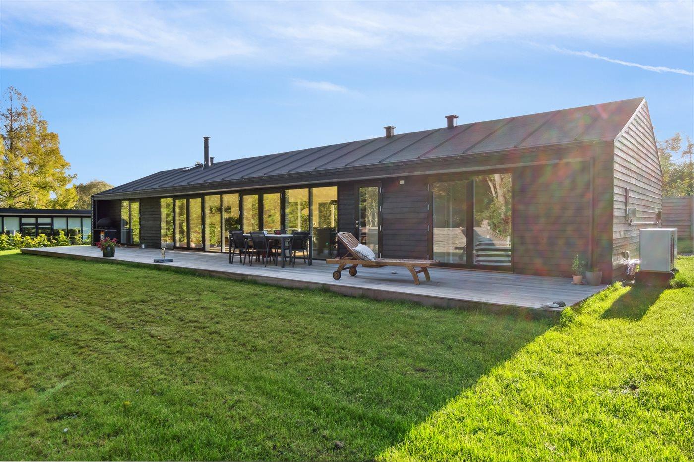 Moderne sommerhus i rolige omgivelser med sø, terrasse og elbiloplader nær Græsted og Rågeleje.