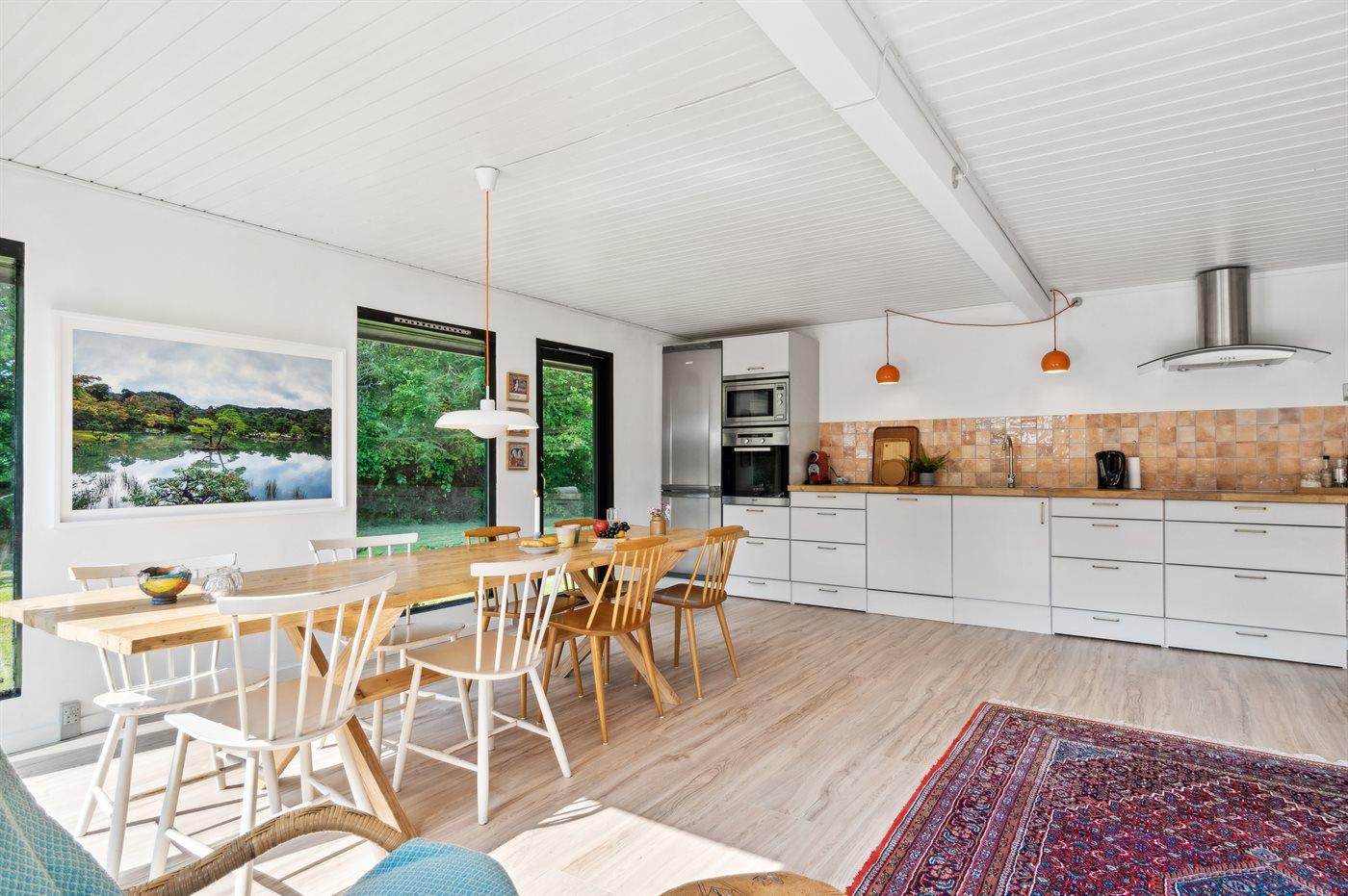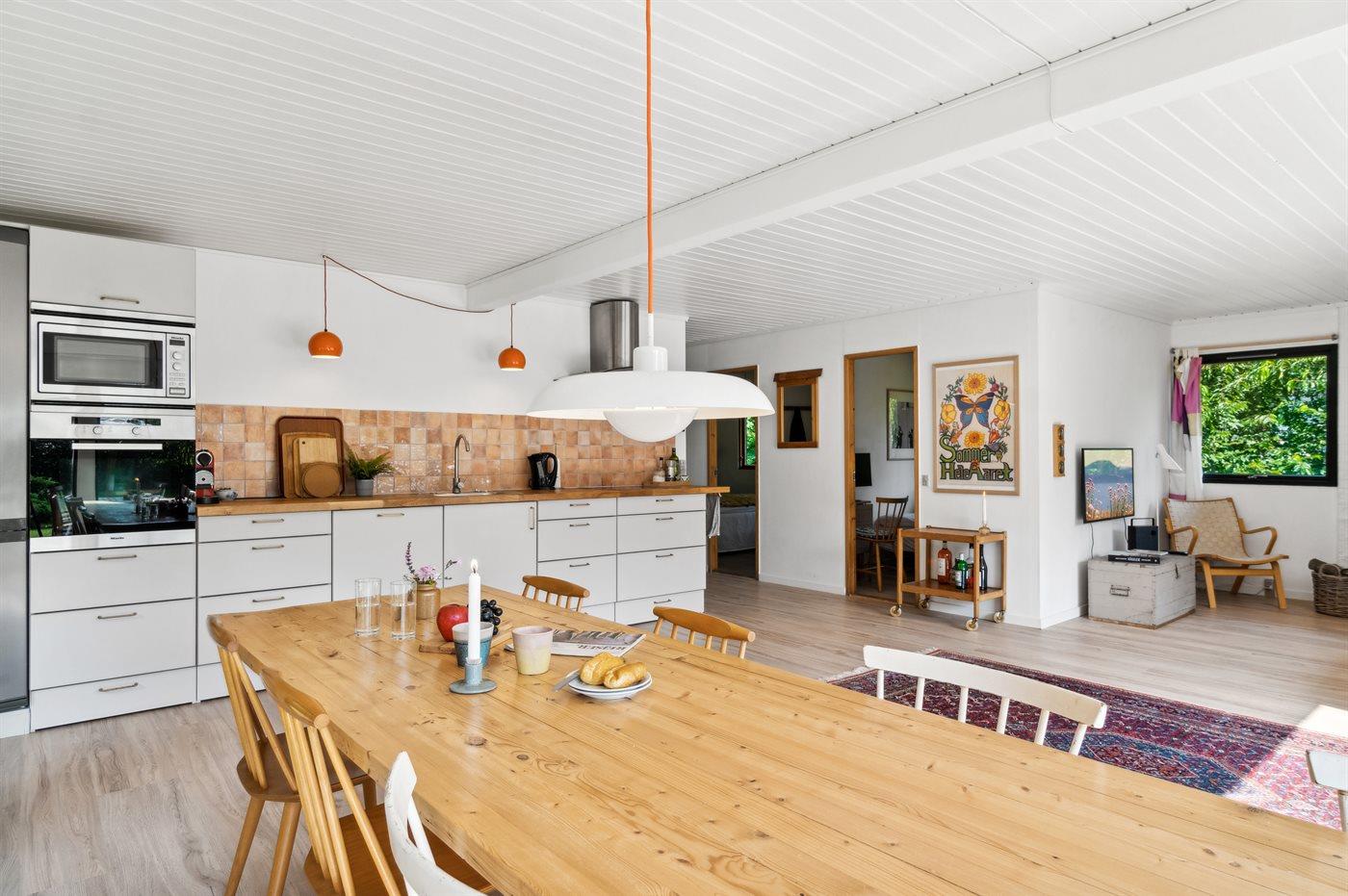 Køkkenet er udstyret med 1 køleskab. Der er 4 induktionskogeplader, varmluftovn, mikrobølgeovn samt opvaskemaskine.