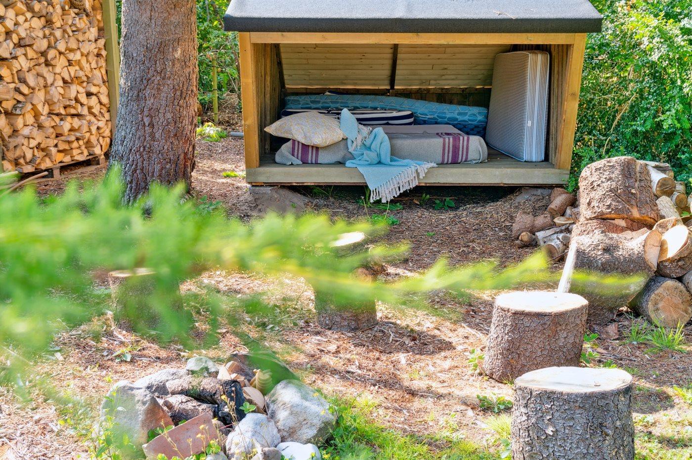Ferieboligen er beliggende på en 1200 m² stor havegrund. Der er 1250 m til havet. Nærmeste forretning er beliggende i en afstand af 500 m. Til ferieboligen hører åbent terrasseareal. Shelter. På lune aftener sørger en udendørs pejs for hyggelig stemning. Grill til rådighed. Parkering ved ferieboligen.