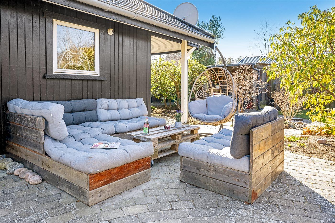 Ferieboligen er beliggende på en 1217 m² stor havegrund. Der er 1300 m til havet. Nærmeste forretning er beliggende i en afstand af 1000 m. Til ferieboligen hører åbent terrasseareal. Desuden er der overdækket terrasse. Trampolin. Beachvolley. Fodboldmål. Bålsted. Grill til rådighed. Parkering ved ferieboligen.