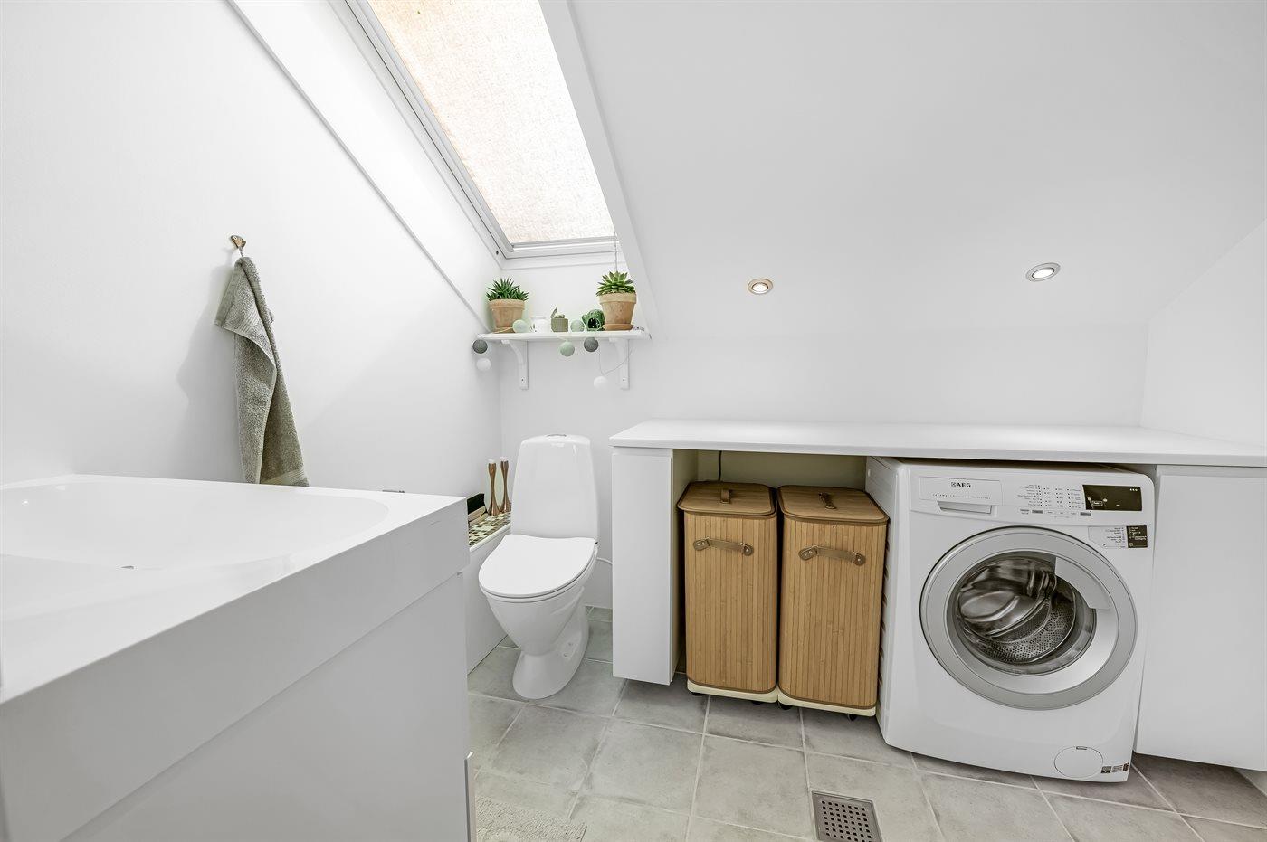 Der er 2 badeværelser med bruseniche og 2 toiletter. Der er gulvvarme på 2 badeværelser.