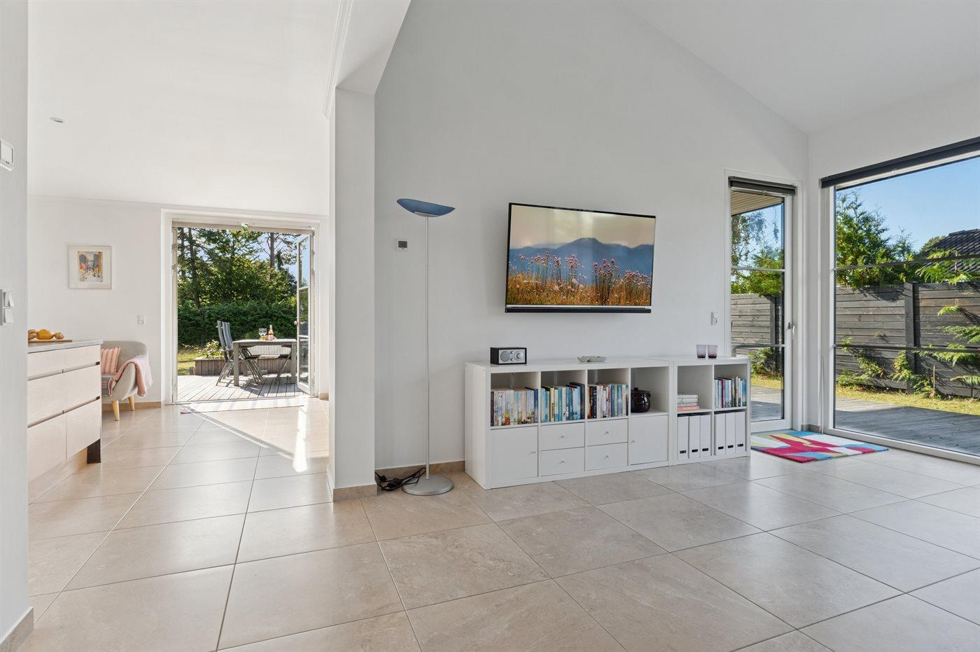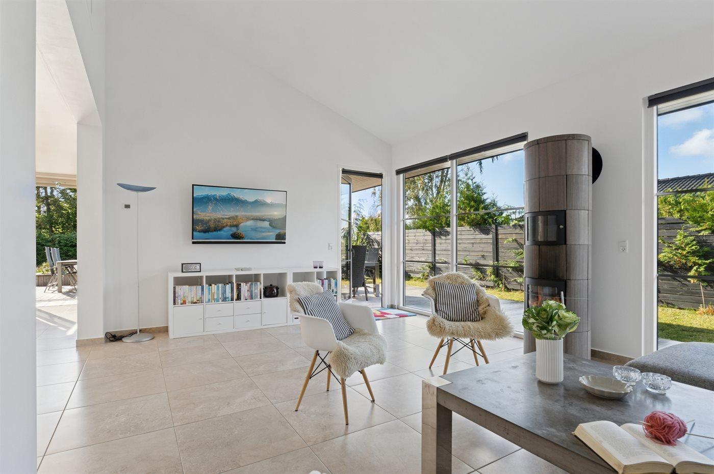 Stuen har direkte udgang til flere solrige terrasser, hvor du kan følge solen dagen igennem – perfekt til morgenkaffe, grillmiddage og afslappende stunder med udsigt til haven.