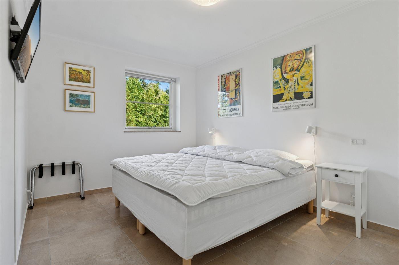 Indenfor byder huset på en lys og enkel indretning med moderne detaljer. Der er god plads og en åben atmosfære, der både er hyggeligt og funktionelt. Flisegulvene giver et rent og praktisk udtryk, mens de store vinduer sikrer masser af naturligt lys. Huset er velisoleret, så det også er oplagt til brug i de køligere måneder.